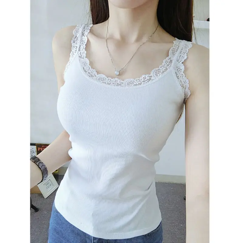 Майка Женская Базовая однотонная без рукавов, яркая Базовая кофта с цветочной кружевной отделкой в рубчик, повседневное нижнее белье, облегающий жилет, карамельные цвета, на лето