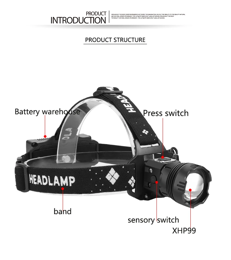 Встроенный Батарея XHP100 9-core Сенсор светодиодный налобный фонарь Power Bank 7800 мАч фара Масштабируемые налобный фонарь на голову фонарь для кемпинга