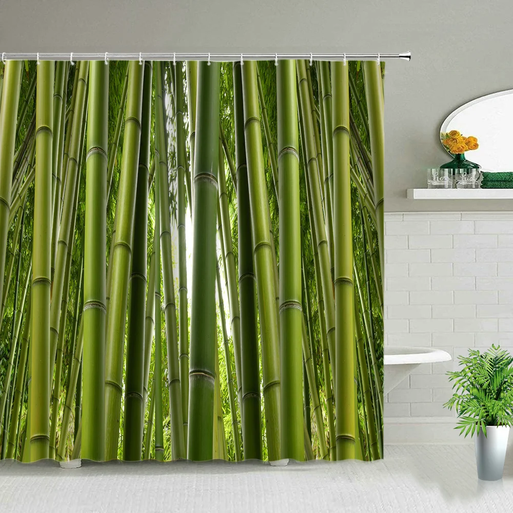 Занавеска для душа желтая, зеленая, Бамбуковая, с природным пейзажем, водонепроницаемая, тканевая, Настенный декор, экран с крючками