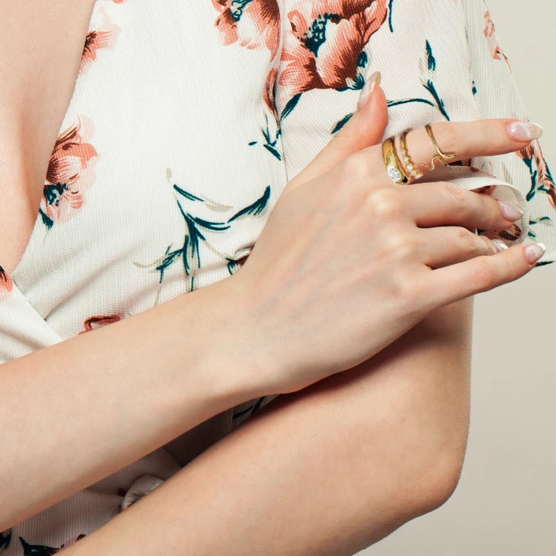 Women JewelryMinimalist Thin Circle Gem Rings Jewelry Carving S925