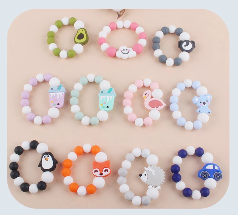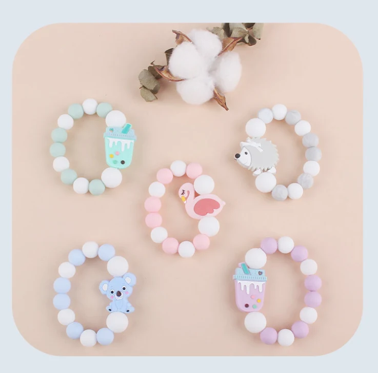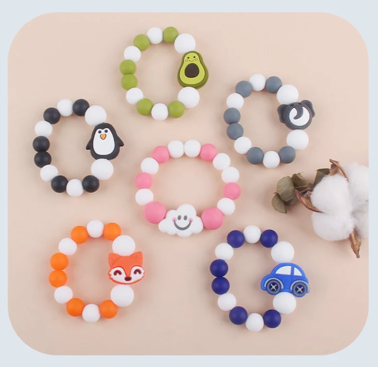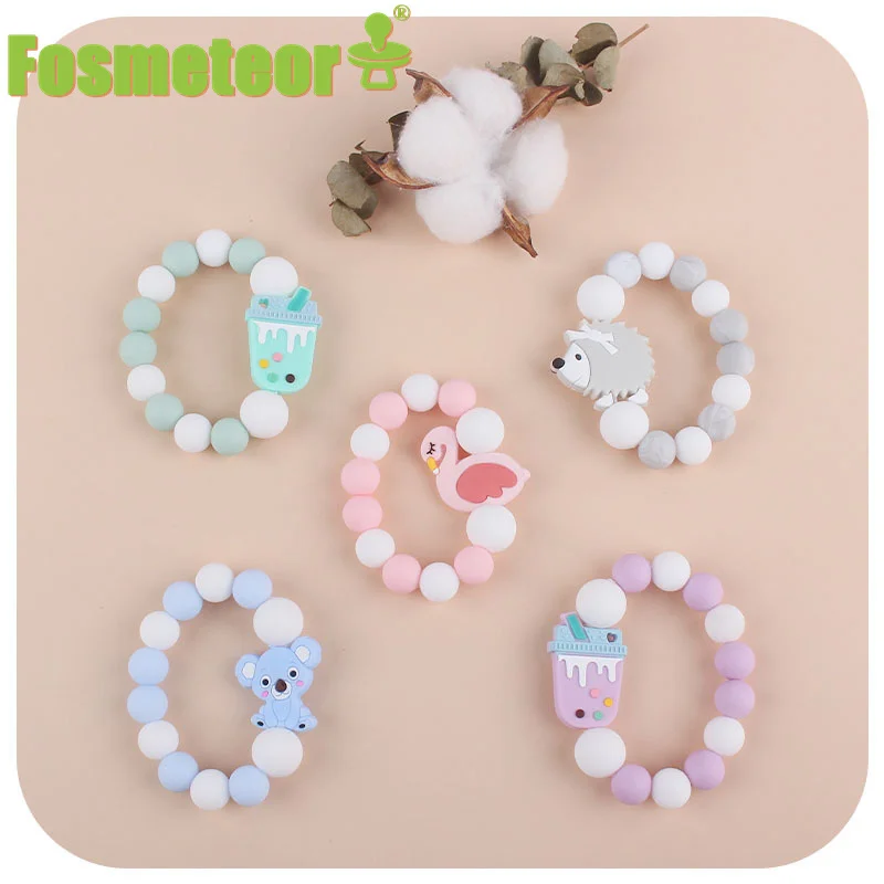 Резиновое кольцо Fosmeteor для детей, ежик, резиновое кольцо, игрушка-погремушка из пищевого силикона, браслет с силиконовыми бусинами, детская игрушка, не содержит бисфенола А, 1 шт.