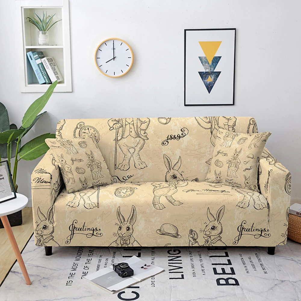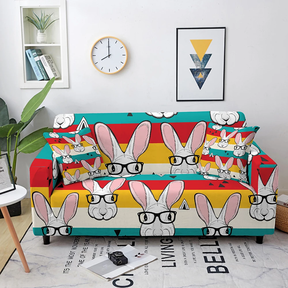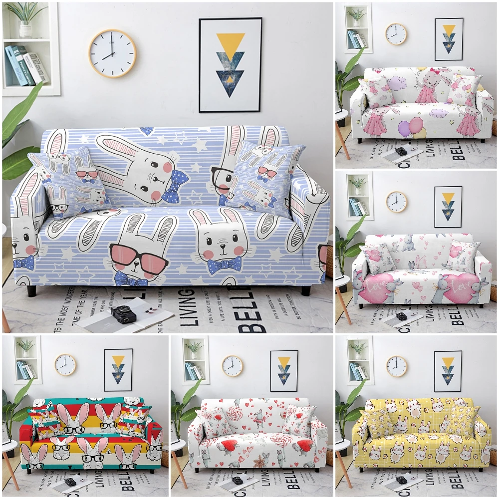 Эластичные Чехлы для дивана в виде кролика из мультфильма для гостиной, эластичные Чехлы для дивана в форме L