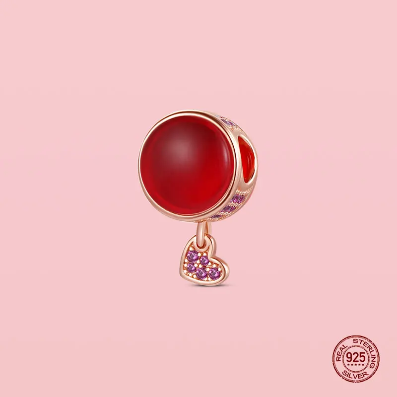 Подвеска из серебра 925 пробы с розовым сердцем, цветком, шариком, ...