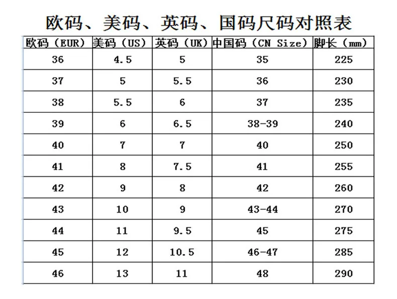 Эти данные выполнены вручную, поэтому возможна погрешность в 1-3 мм. Это нормально. Пожалуйста, обратитесь к фактической длине стопы.