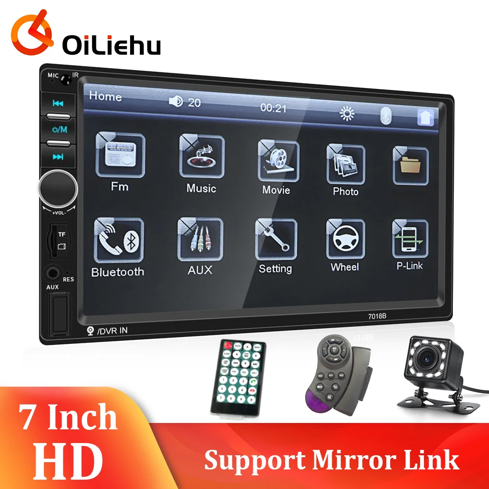 Автомагнитола OiLiehu 2 Din, 7 дюймов, сенсорный экран, стереоприемник, мультимедийный mp5-плеер, Bluetooth, FM, USB, SD, TF, управление на руле, 7 цветов