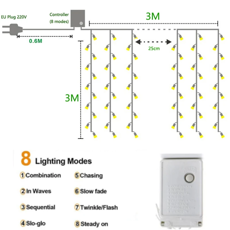 Рождественская Декоративная гирлянда, 220 В, 3*1 м, 3*3 м, 6*3 м дл...
