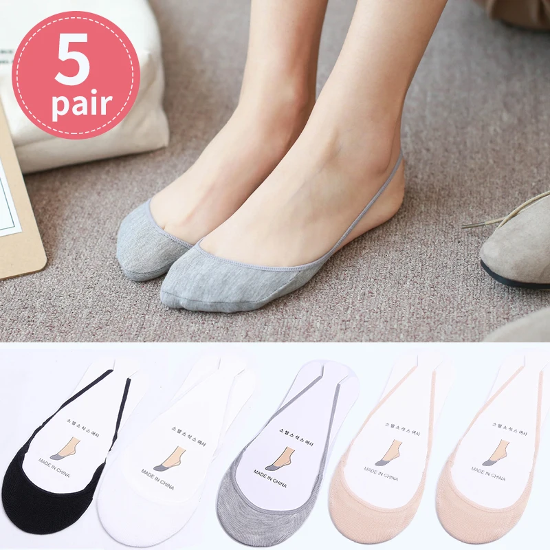 5 пар; Женские невидимые носки; Нескользящие носки-башмачки; Обувь на высоком каблуке; Тонкие нескользящие носки-тапочки; Сезон лето