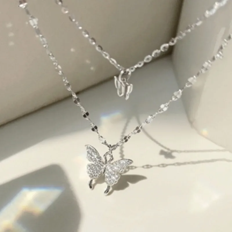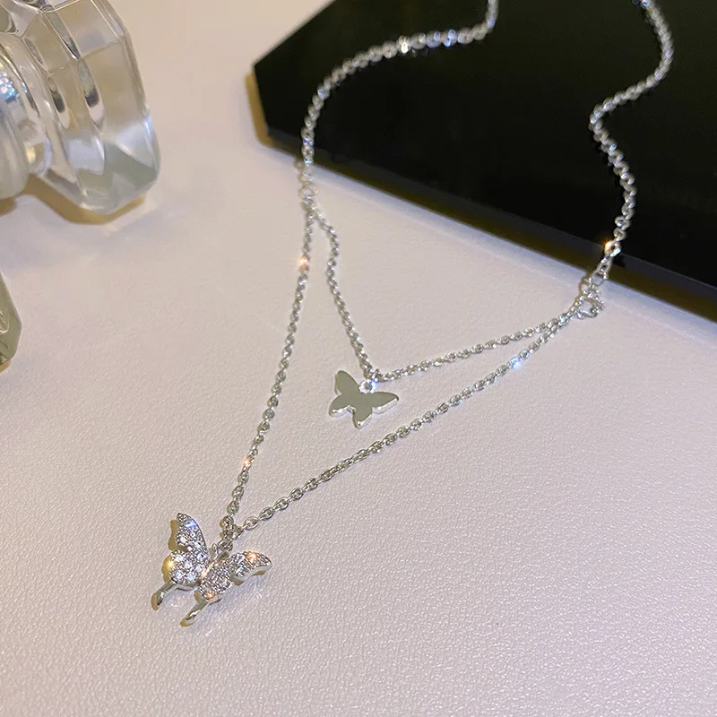 Корейская версия ожерелья, новинка 2021, модное женское ожерелье с двойным кристаллом в виде бабочки, Женские Заводские продажи
