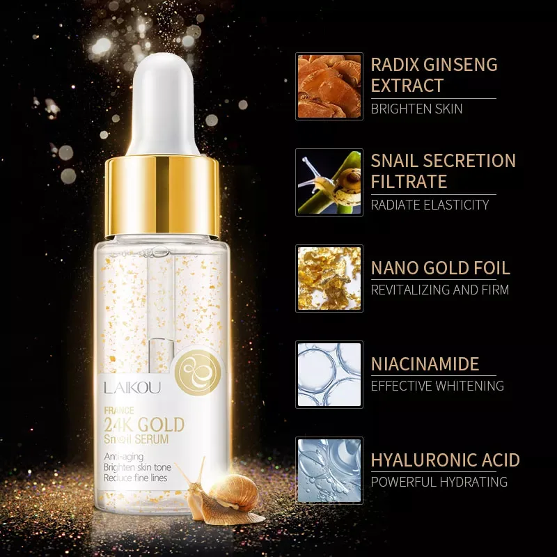 LAIKOU 24K Улитка лицевая эссенция Золотая алюминиевая фольга укрепляющая против морщин Омолаживающая кожа