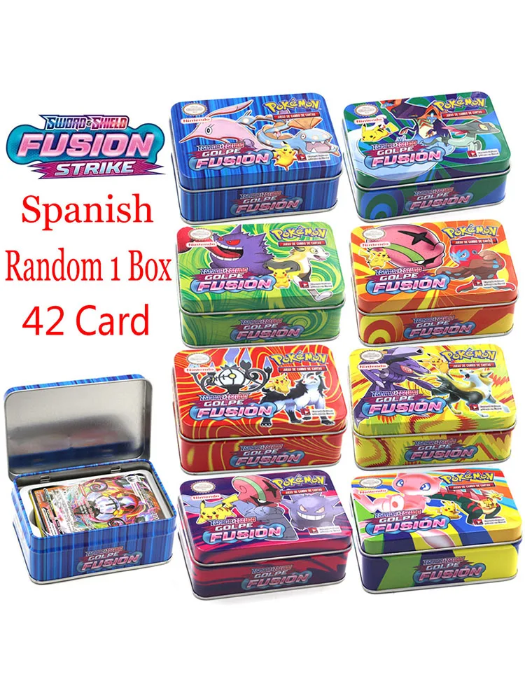 42 шт. испанские карты покемона, железная коробка, TAKARA TOMY, бое...