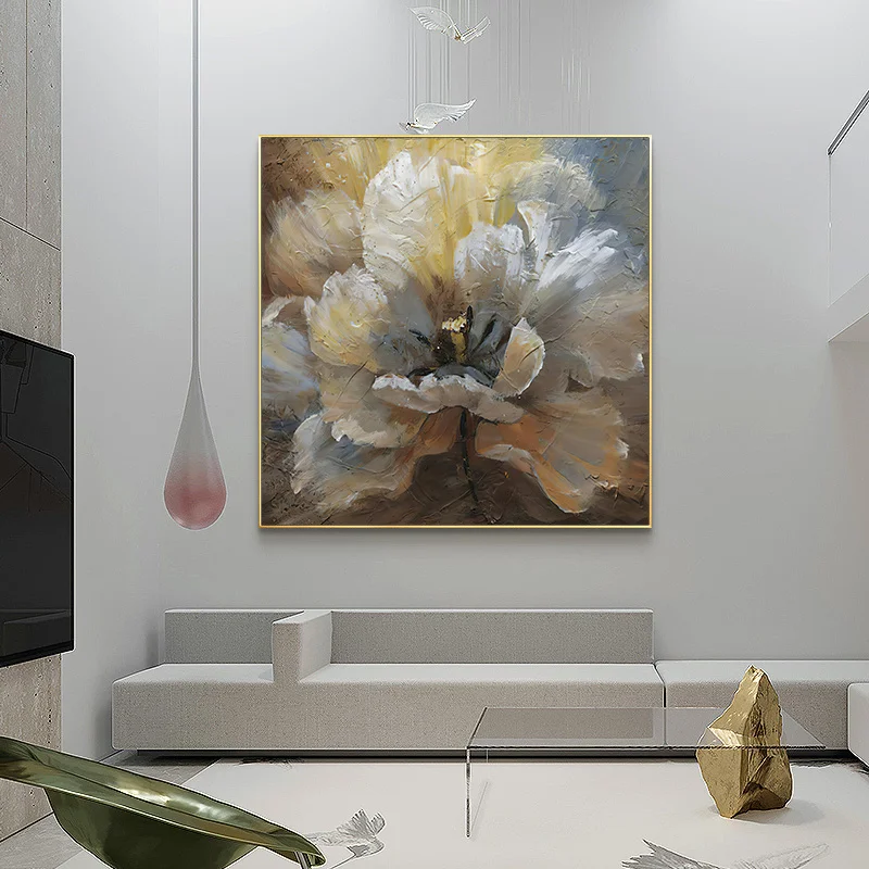 Абстрактная картина с большими цветами на холсте искусство и рисуно...