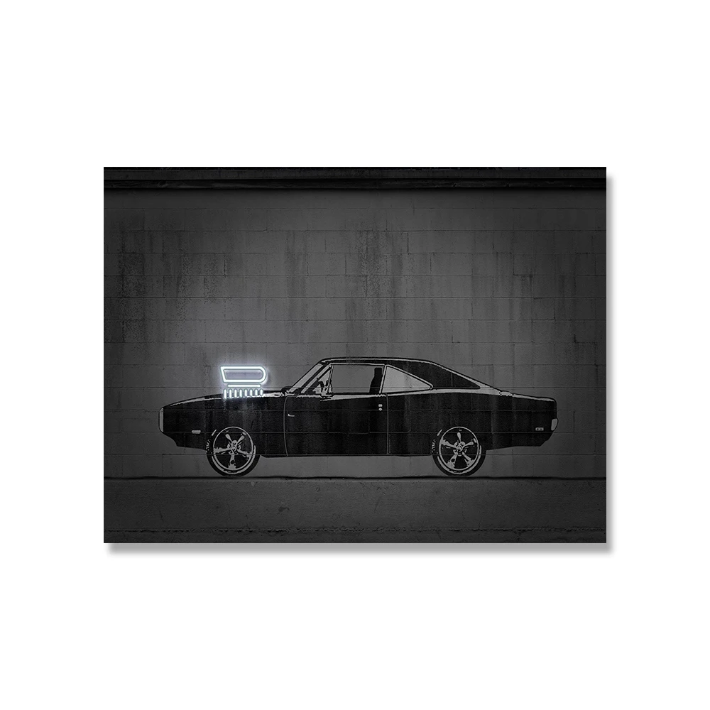 Постер в стиле киберпанк, с изображением спортивного автомобиля, ул...