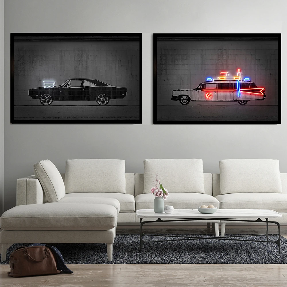 Неоновый постер на автомобиль с надписью Ghostbusters, рисунок на стену в стиле граффити, поп-арт, ретро Современный домашний декор без рамки