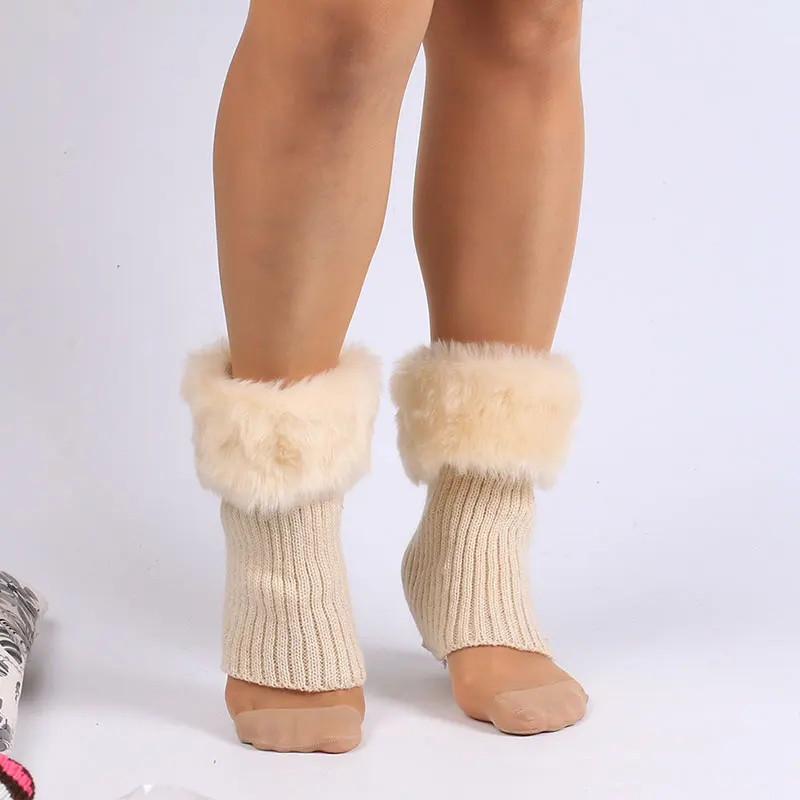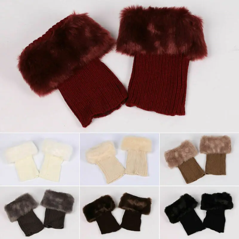 Вязаные женские носки из искусственного меха манжет для ботинок Зим...