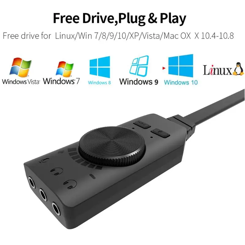 GS3 Виртуальная 7,1 канальная звуковая карта конвертер адаптер Внешний USB 3,5 мм гарнитура стерео для ПК настольный ноутбукОписание:100% новый и высокое качествоХарактеристика:Виртуальная звуковая карта игры 7,1.С чипом SSS1629A5, который имеет новейший профессиональный эффект объемного звучания виртуального канала, GS3-это игровая звуковая карта, которая действительно поддерживает реализацию эффекта объемного звучания виртуального 7,1 канала.Бесплатная установка привода, подключи и работай.Нет настройки, один ключ запускает Режим канала 7,1, уменьшает ненужную громоздкую и сложную настройку программного обеспечения системы.Встроенный модуль усилителя для наушников поддерживает ручку звуковой карты для увеличения громкости наушников на 15 МВт.Он поддерживает Двухрежимная система наушников, 3,5 мм с одним разъемом (уровень 4) и 3,5 мм двойной вилкой (уровень 3), И понимает, удобный емкостный Мини-стилус, служащий также в токарная обработка обычные наушники в 7,1 внутриканальных наушников.Легко расширяет ваше стерео динамик или наушники до 7,1 канальной среде, предоставляя вам высокого качества звука удовольствия.Он совместим с несколькими системами: для Windows XP, для Windows Vista, для Windows 7/8/10, Linux, для OS X и других систем.Также подходит для звуковой карты на компьютере/ноутбуке/рабочем столе, которая выгорает или теряет связь с материнской платой.Характеристики:Тип товара: звуковая картаМодель: GS3Материал: пластик + металлРазмеры: кабель Длина: 7,5 см/2.9inЦвет: черныйЧастота дискретизации: 44,1 K/48K/96KХарактеристики: виртуальный 7.1 объемный звукФункция: Настройка большой ручки/одна клавиша 7.1CH/muteСовместимый режим: Одинарная/двойная гарнитураКоличество: 1 шт.Примечание:Перевод ед. измерения: 1 см = 10 мм = 0,39 дюймовВозможны отклонения в 0-1 см вследствие измерений вручную. Пожалуйста, убедитесь, что вы не возражаете, прежде чем сделать ставку.Из-за разницы между различными мониторами изображение может не отражать фактический цвет изделия. Спасибо!Посылка включает в себя:1 звуковая карта