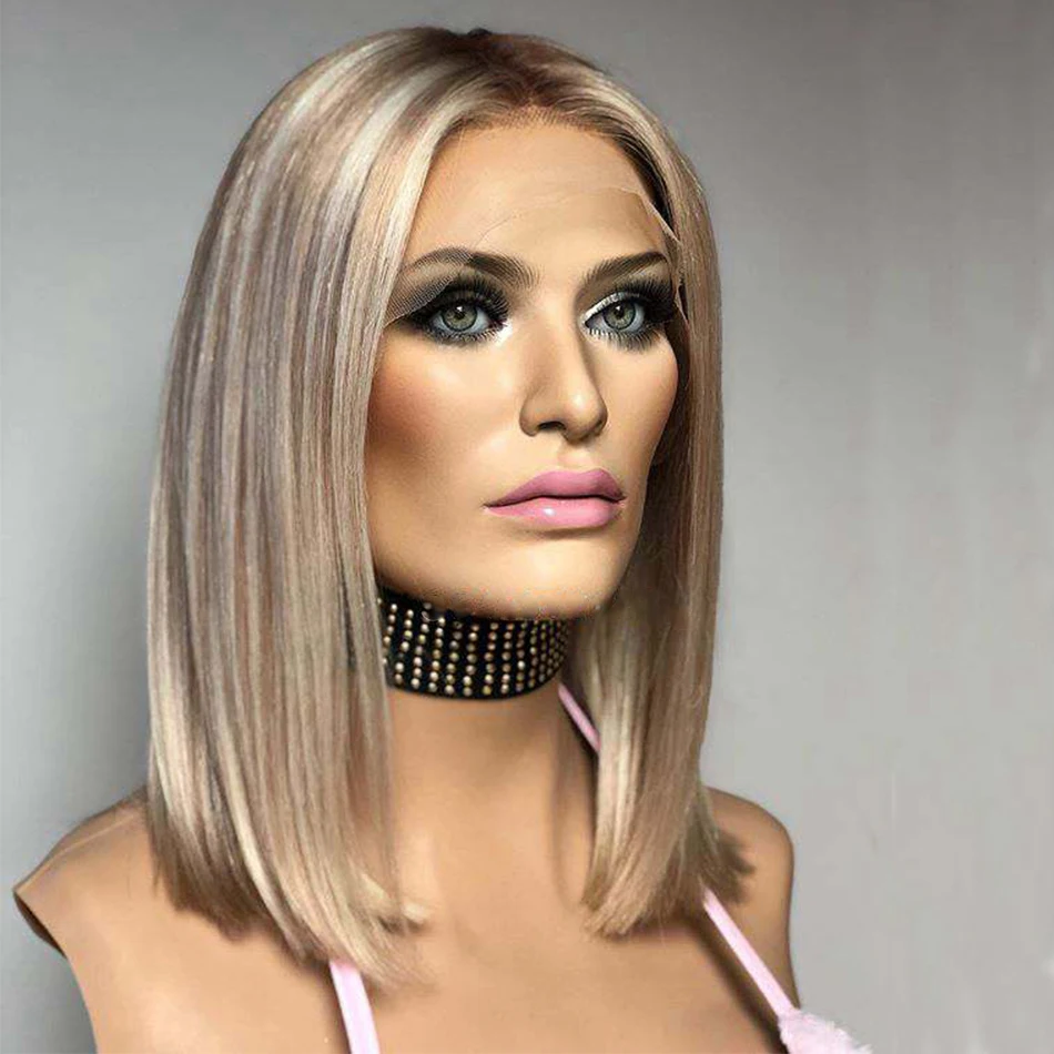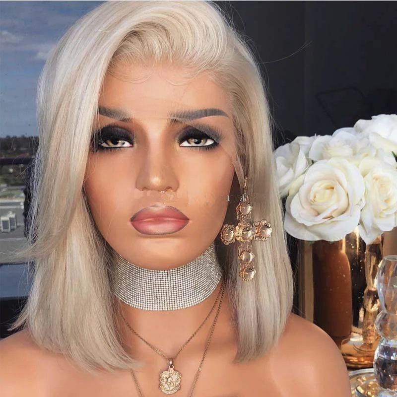 Индийский короткий Боб на полной сетке с эффектом омбре Платиновый светлый 13x6 парики из человеческих волос на сетке спереди пепепельный светлый прозрачный парик