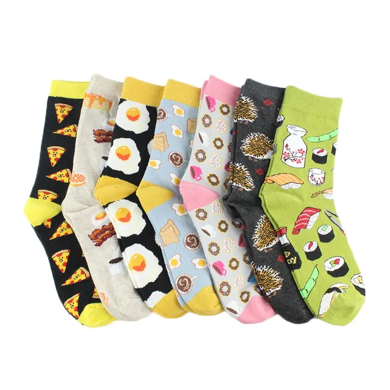 WPLOIKJD носки милые забавные Женская Новинка яйцо пицца суши пончики Ежик бабочка соккер жаккардовые женские носки