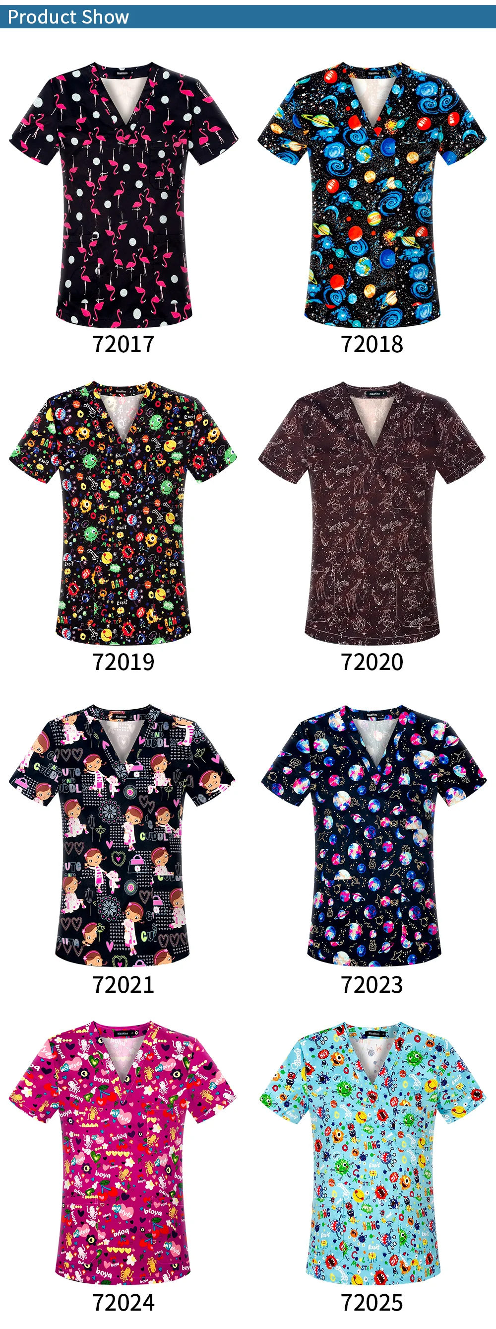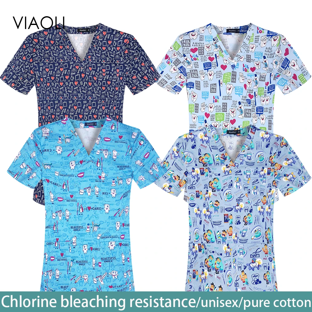 Scrubs tops Cute Cartoon printing Kindergarten teacher workwear pet...