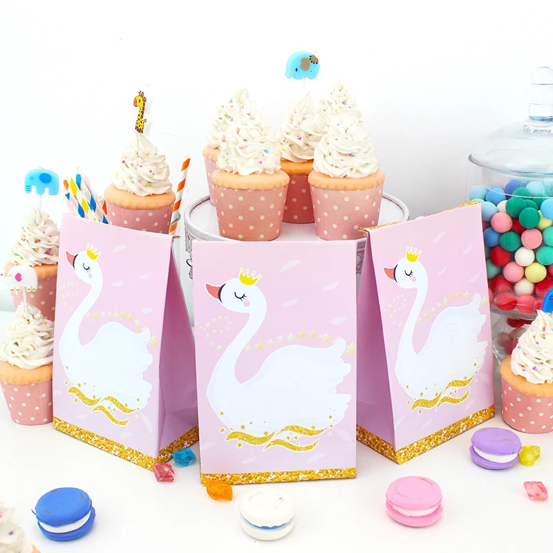 Коробка для конфет в виде лебедя, коробка для конфет на день рождения с блестками, украшение для вечевечерние в виде лебедя на день рождения, блестящая бумажная Подарочная коробка, украшения на день рождения
