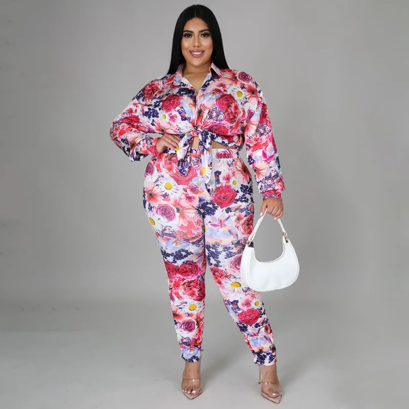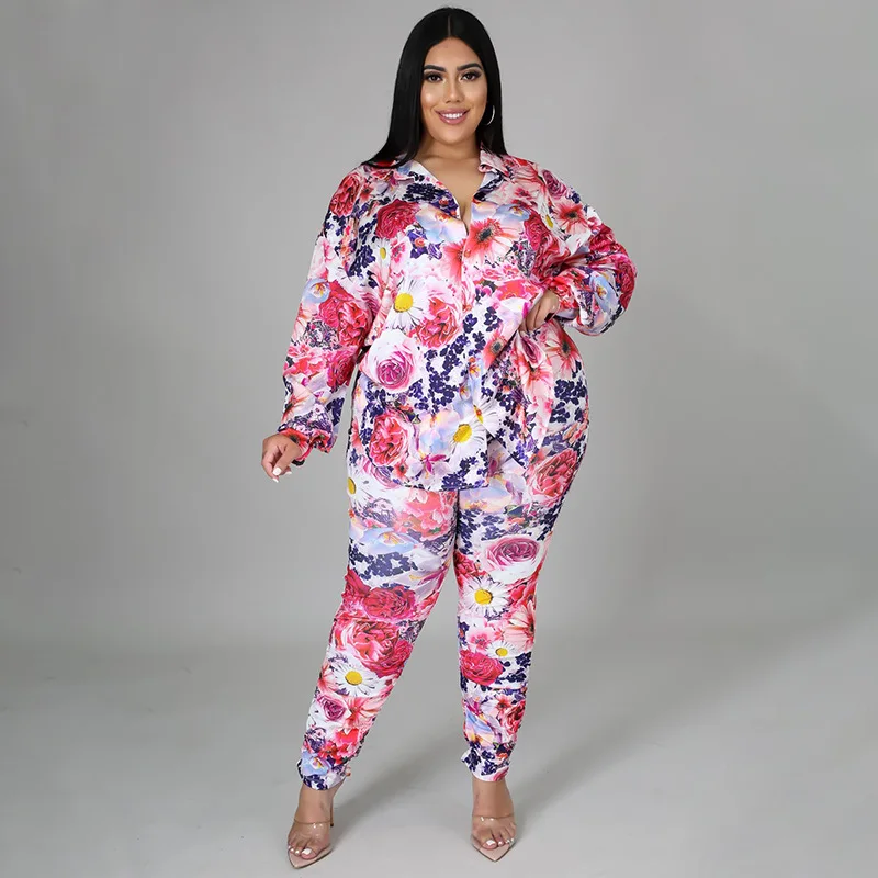 Женская одежда больших размеров 3XL, 4XL, комплект из двух предметов, осенняя блузка с длинным рукавом и брюки, модный офисный Женский комплект с принтом