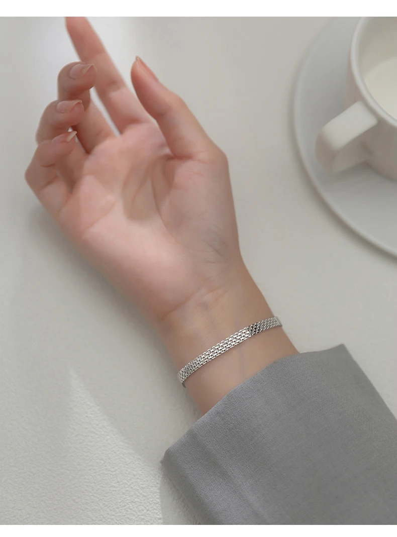 Женские браслеты из серебра 925 пробы, ювелирные изделия, очаровательные геометрические цепочки с широким лицом, изысканные роскошные браслеты для девочек