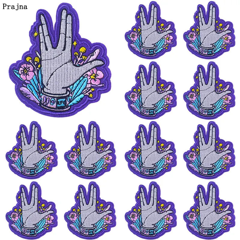 Prajna 10 шт. оптовая продажа, мультяшная аппликация, вышитые нашивки на одежде, сделай сам, хиппи, жесты, железные нашивки для одежды, значки
