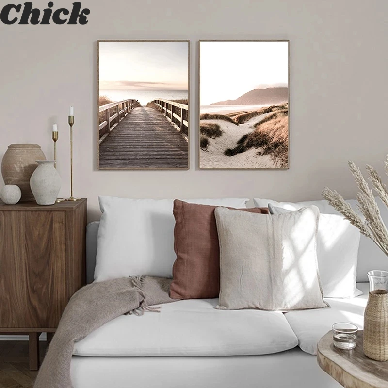 Скандинавский природный пейзаж, холст, живопись, трава, мост, пляж, закат, настенный плакат, искусство, современная картина, Декор для дома