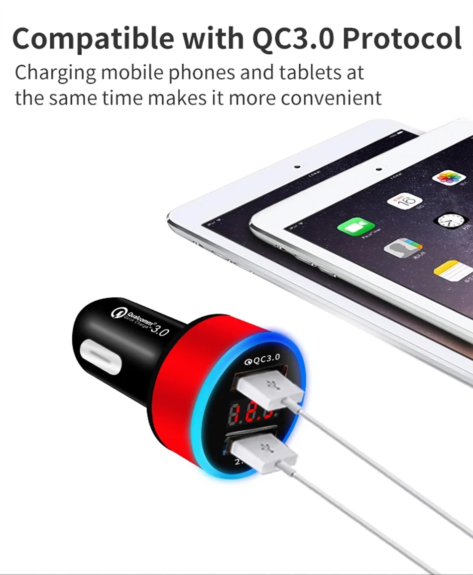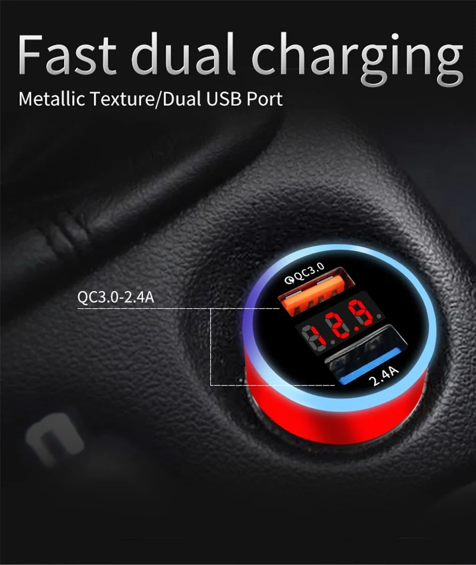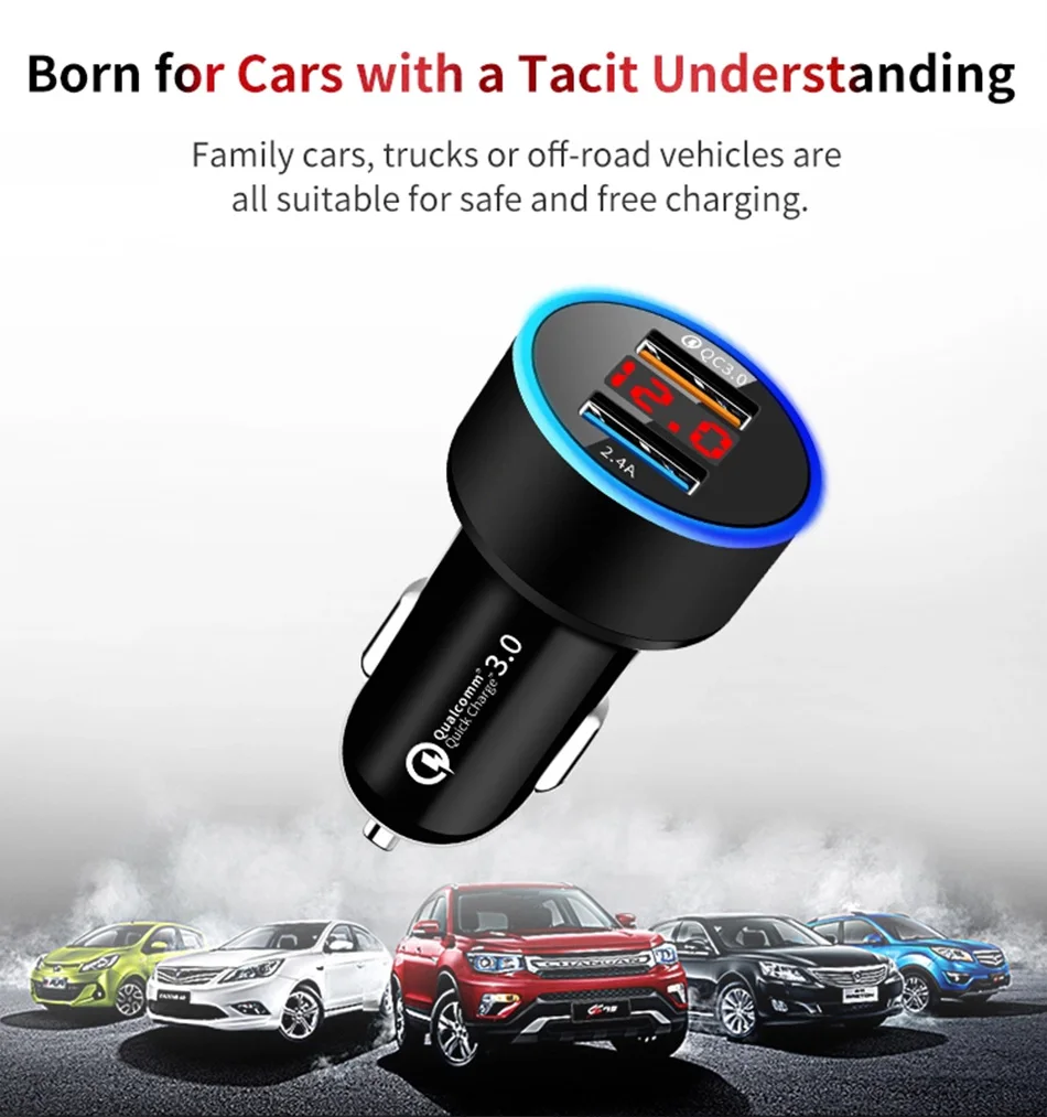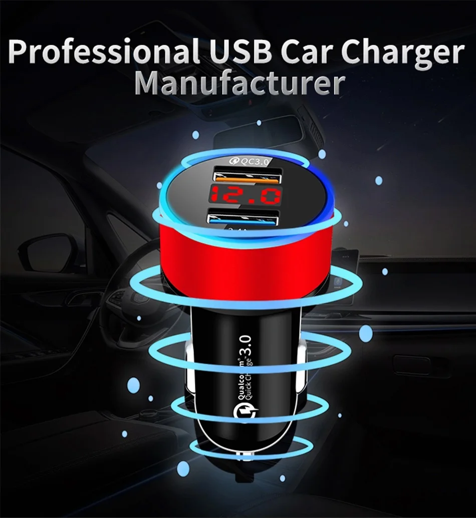 Автомобильное зарядное устройство QC3.0 2.4A с двумя usb-портами, ЖК-дисплей, 12-24 В, прикуриватель, быстрое зарядное устройство, автомобильный адаптер USB, обновленная версия Название: автомобильное зарядное устройство для прикуривателя (Быстрая зарядка qc 3,0)Цвет: черныйМатериал: АБС-пластик Параметр:1. Подходит для детей возрастом от 12V-24V2. Двойной usb-порт, дисплей напряжения3. QC3.0 + 2.4A