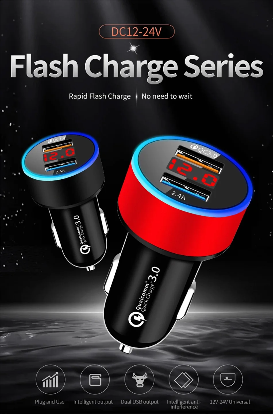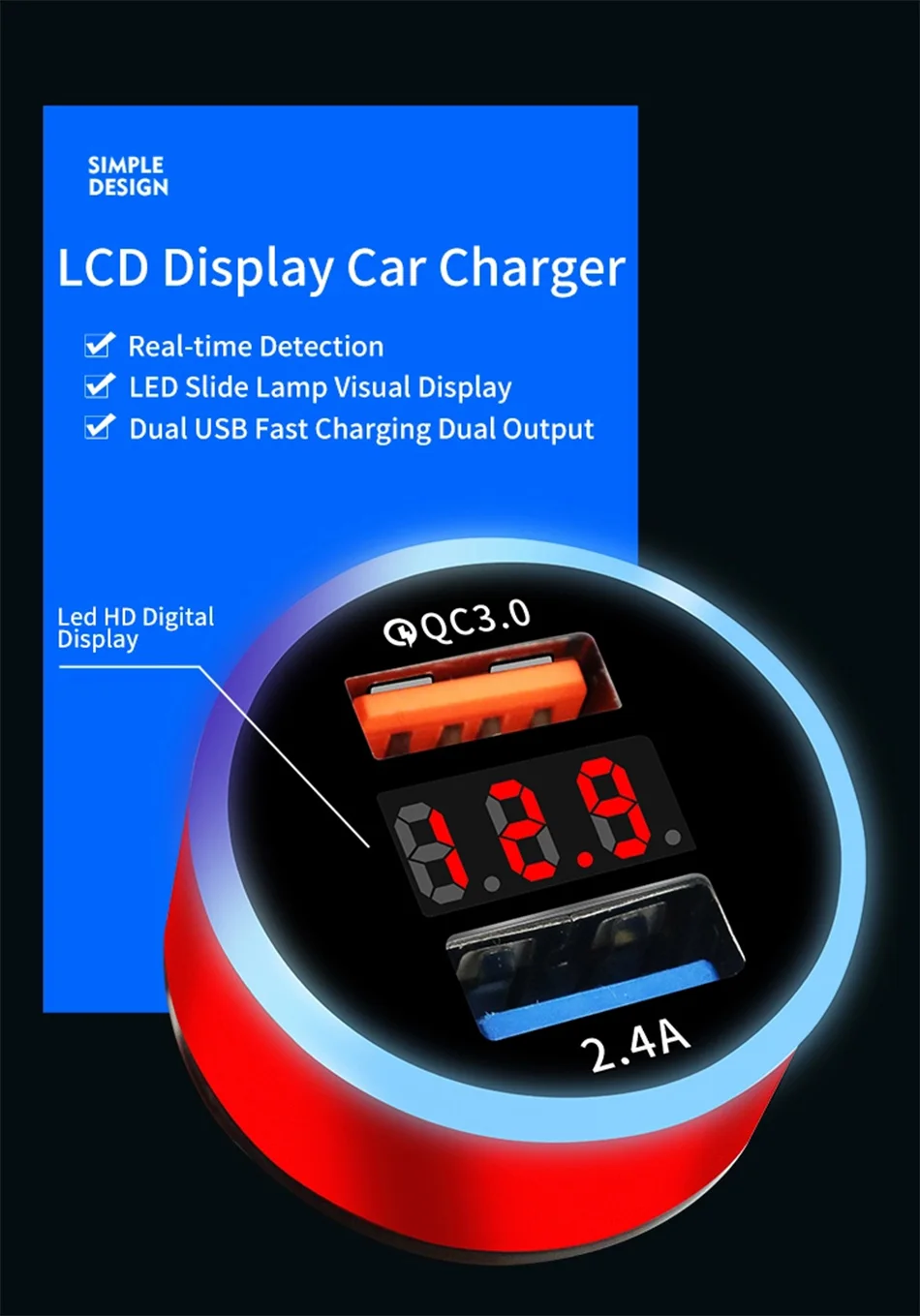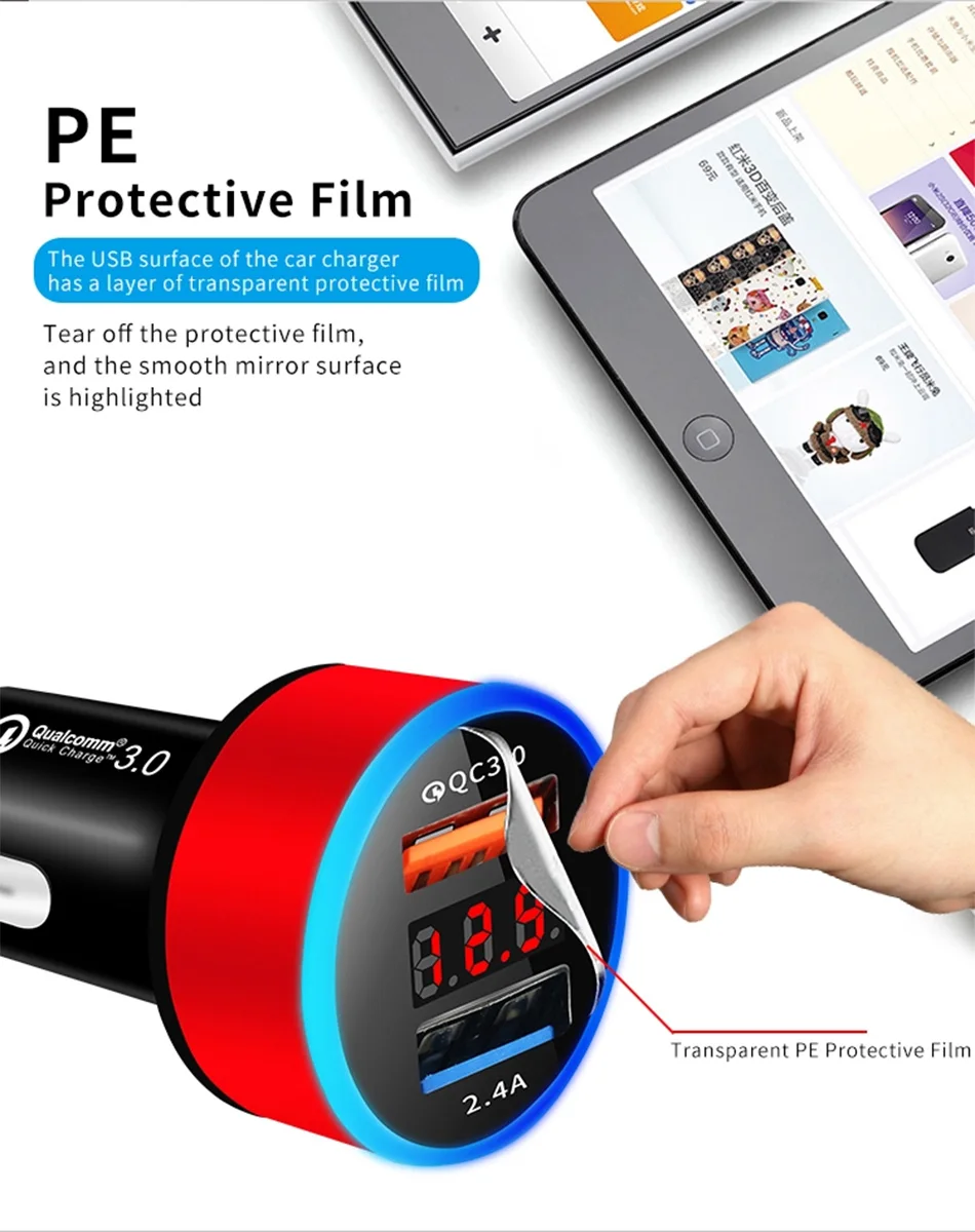 Автомобильное зарядное устройство QC3.0 2.4A с двумя usb-портами, ЖК-дисплей, 12-24 В, прикуриватель, быстрое зарядное устройство, автомобильный адаптер USB, обновленная версия Название: автомобильное зарядное устройство для прикуривателя (Быстрая зарядка qc 3,0)Цвет: черныйМатериал: АБС-пластик Параметр:1. Подходит для детей возрастом от 12V-24V2. Двойной usb-порт, дисплей напряжения3. QC3.0 + 2.4A