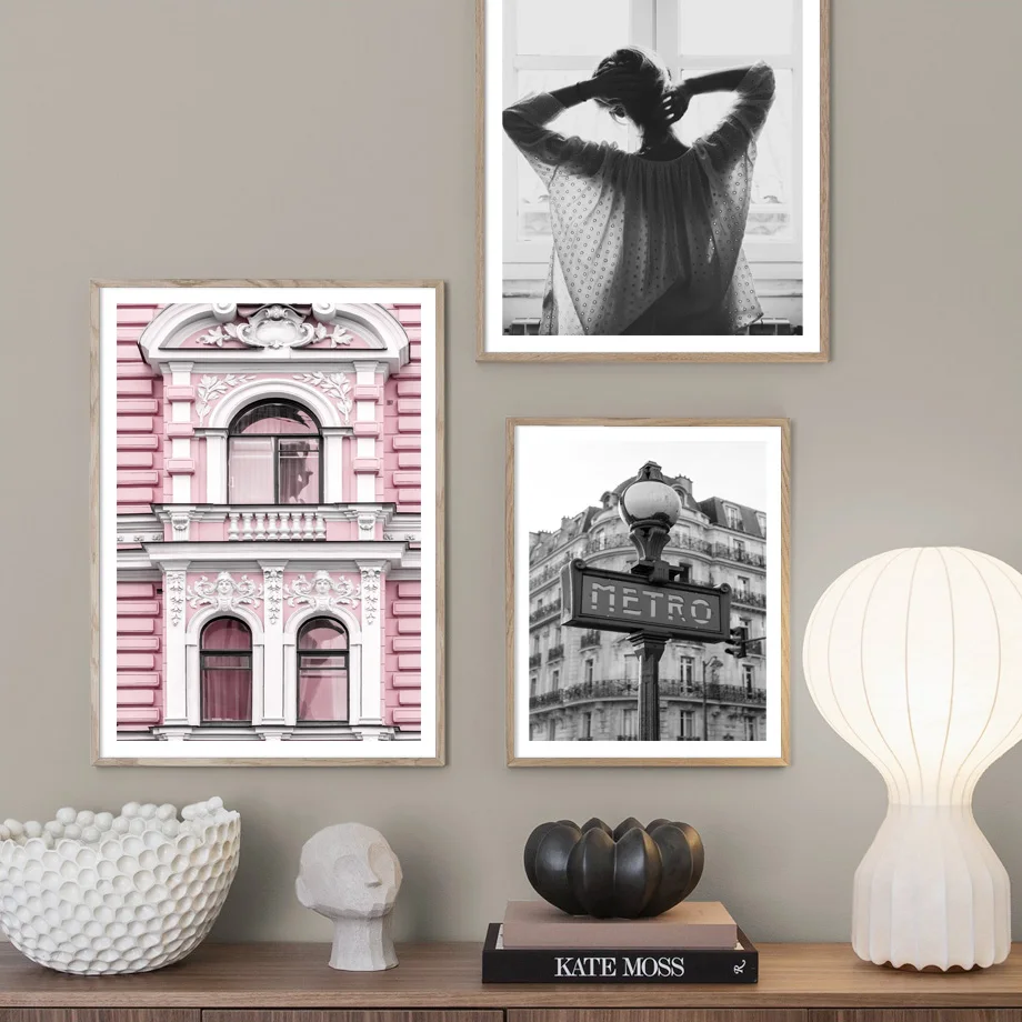 Настенные плакаты и картины с изображением розового города, трамвая...