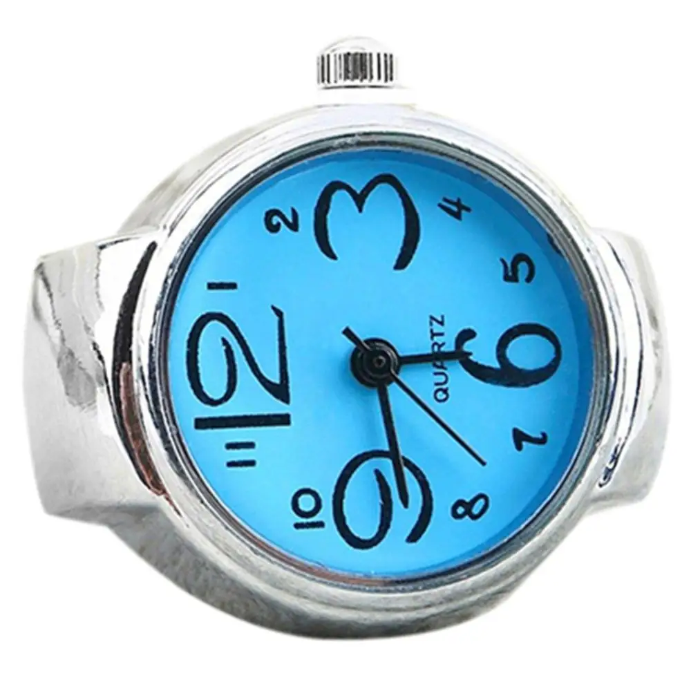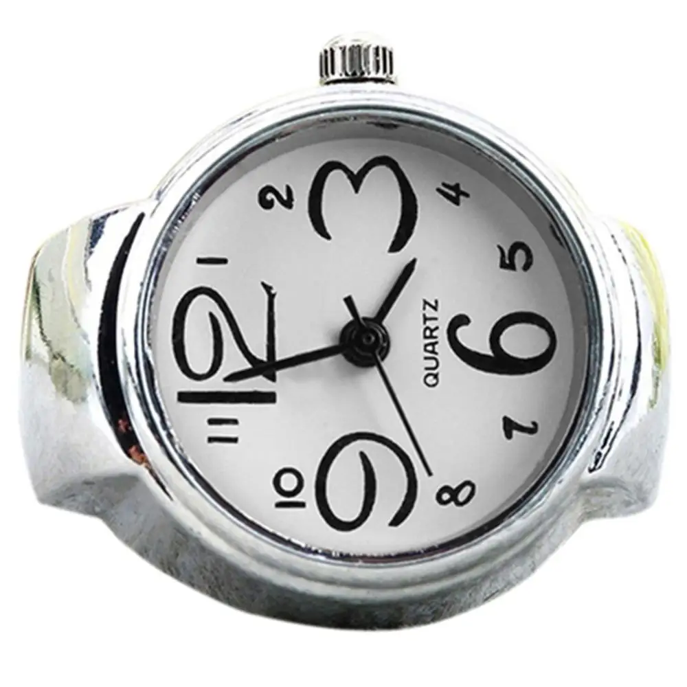 ЖенскиеЖенские часы с кольцом на палец, гладкий стальной круглый циферблат, эластичное кварцевое кольцо на палец с часами, Женское кольцо, мини-размер, подарок для студента