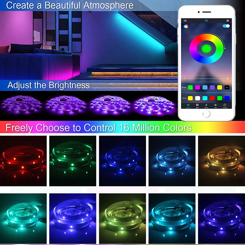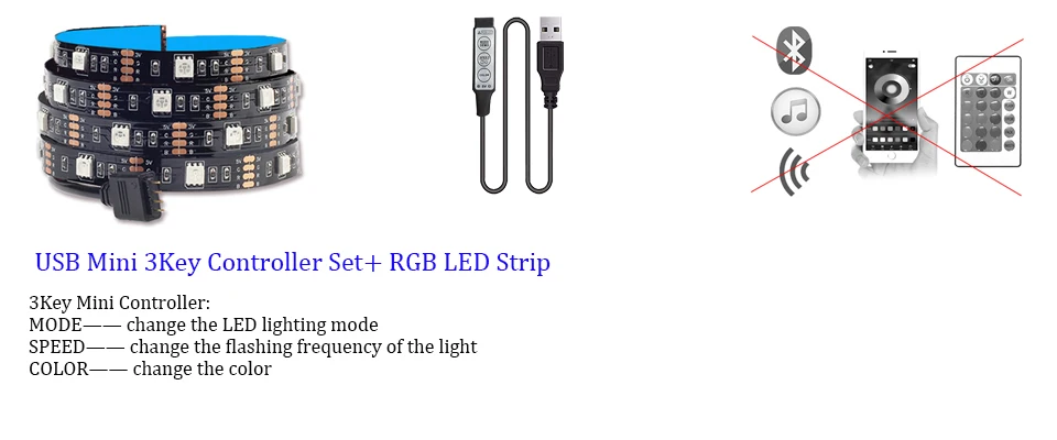Гибкая светодиодная ленсветильник с Bluetooth-контроллером и USB, 5050 RGB-подсветка, 5 в пост. Тока