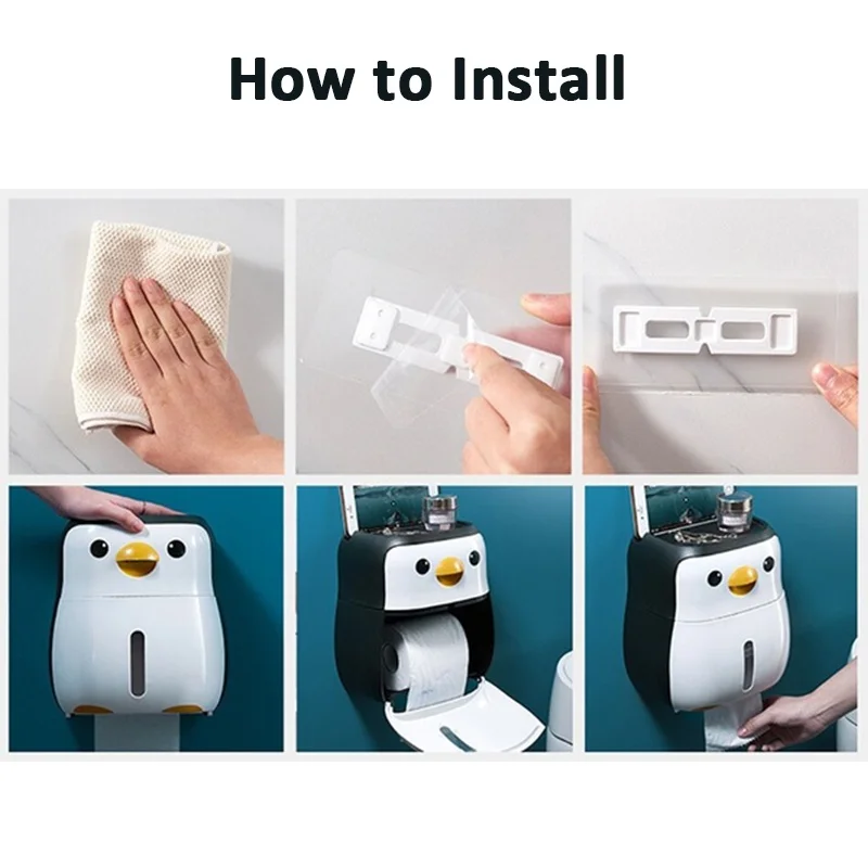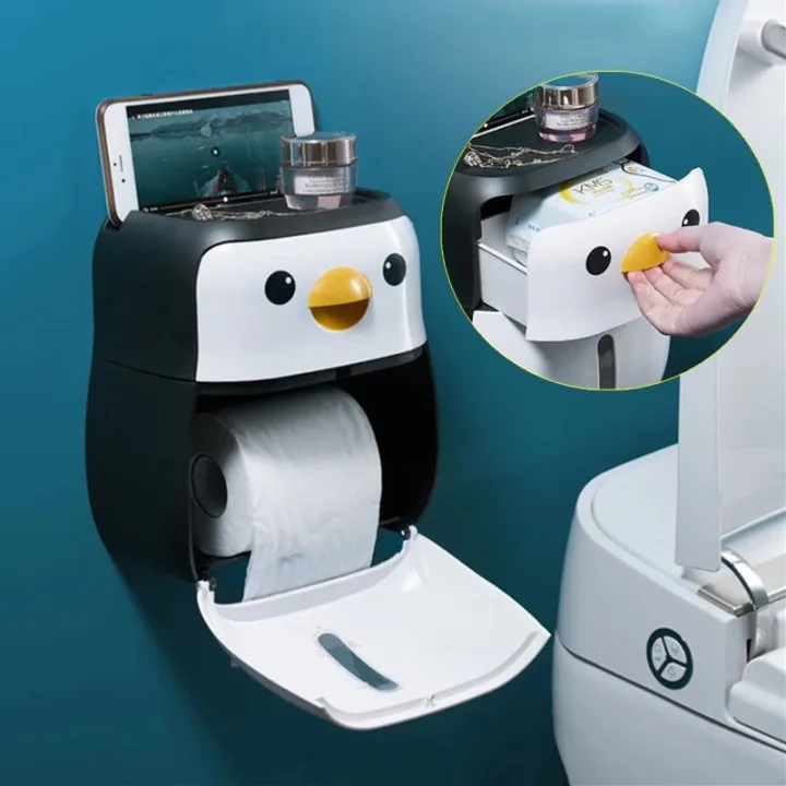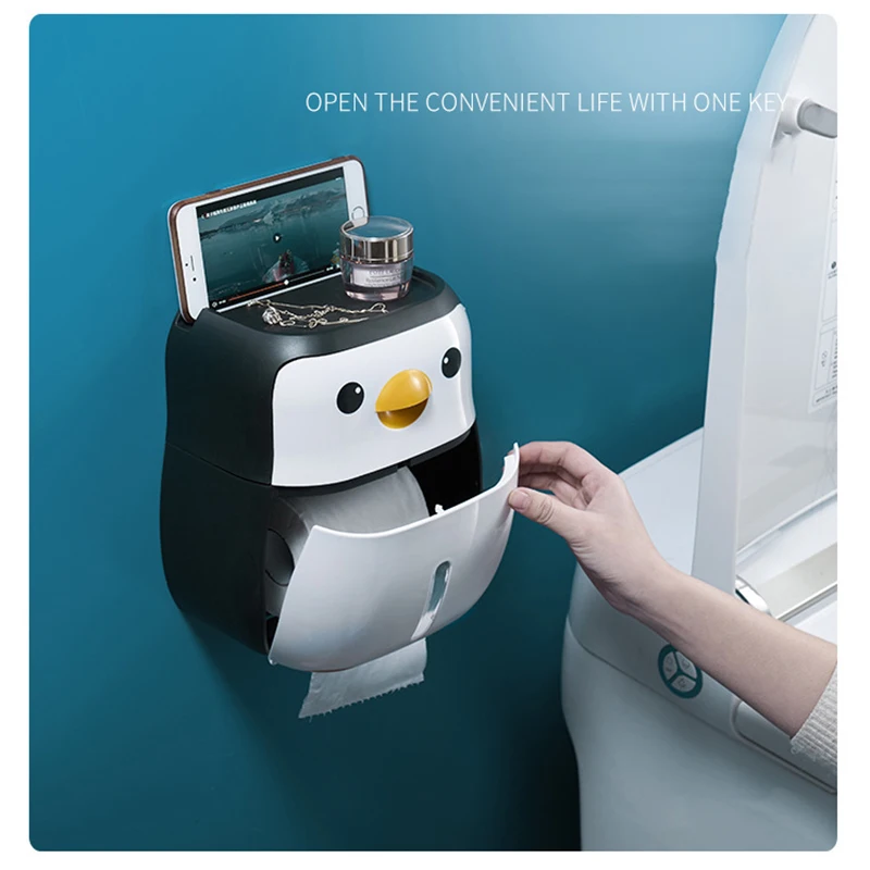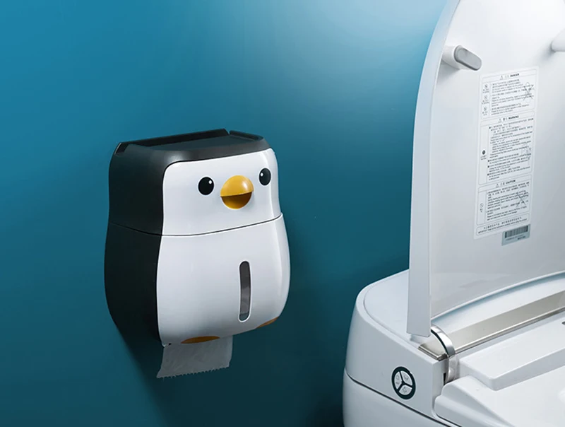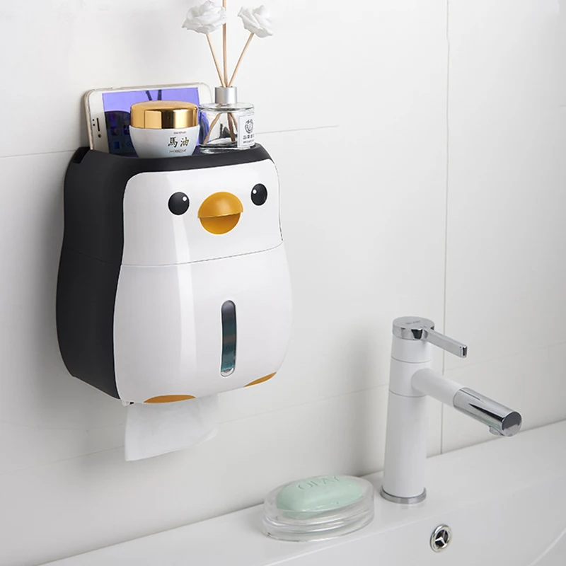 Настенный держатель для туалетной бумаги в форме пингвина, коробка для хранения рулонной бумаги, без перфорации, аксессуары для ванной комнаты