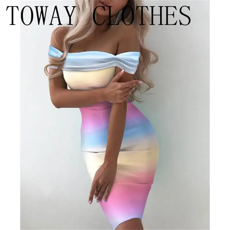 Мини-платье с открытыми плечами, коротким рукавом, облегающее платье с вышивкой Омбре, тропическим принтом, цветными блоками и рюшами, шикарные платья