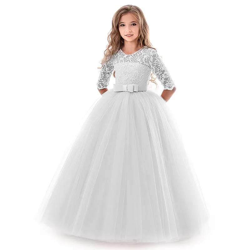 Длинное кружевное бальное платье с цветами для девочек, платье для выпускного вечера, платье принцессы для свадьбы, первого причастия, свадьбы, вечеривечерние, официальное платье