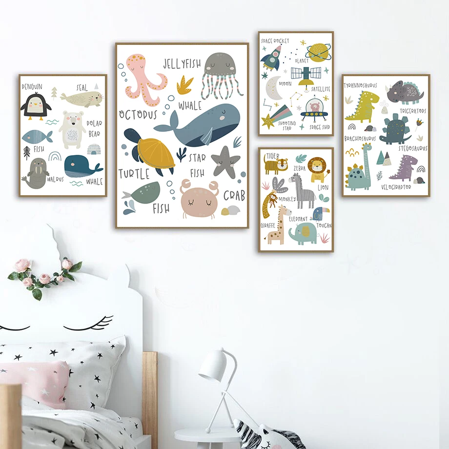 Настенная картина в стиле бохо, радуга, динозавр, любовь, алфавит, ...
