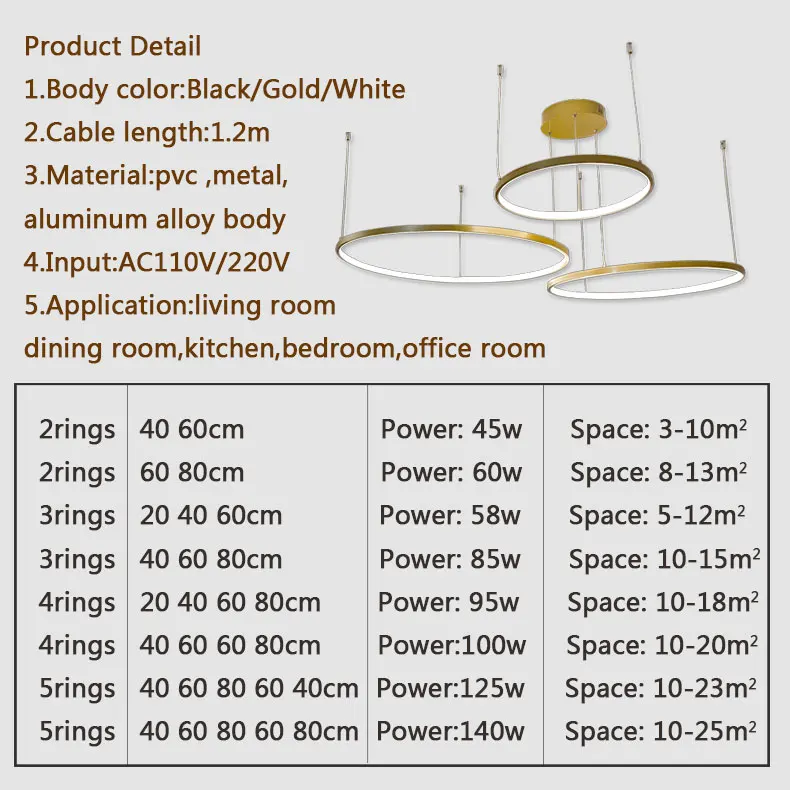 Страна: RU Lampshade Color: Gold Emitting Color: Warm white no remote Wattage: 40 60 80 60cm 4Rings Ships From: China Доставка: Cainiao Heavy Parcel Line 18.01.2022