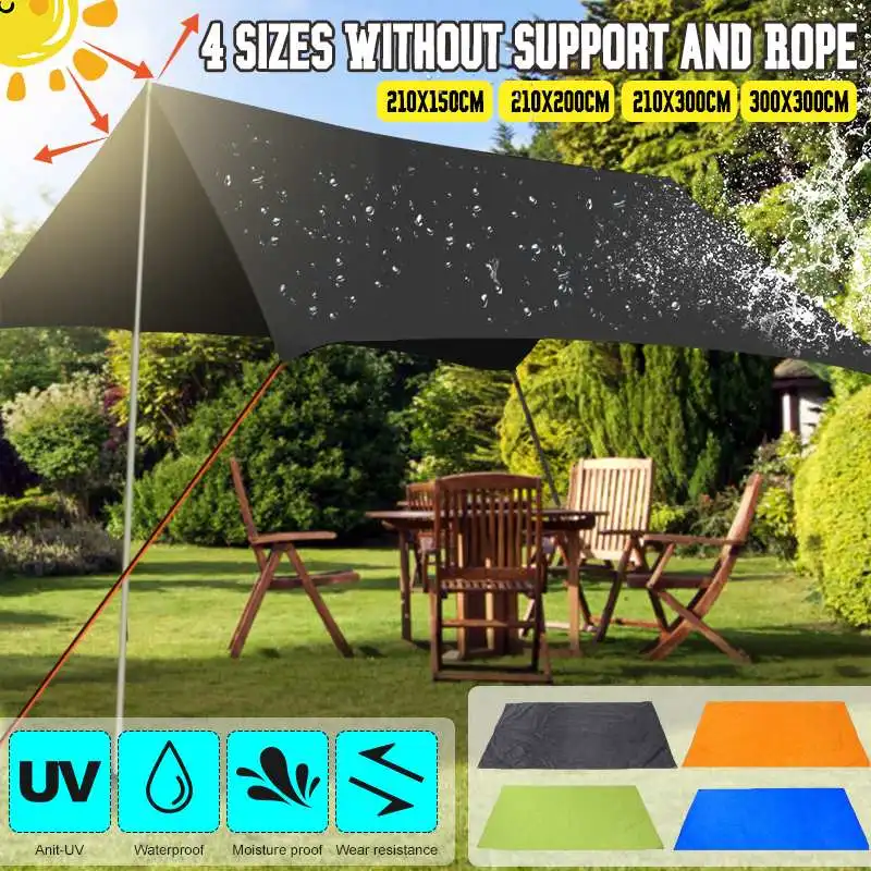 Спецификация:Материал: 210D ткань ОксфордВес: около 650 гРазмер: 300*300 см/118,1*118,1 дюймаЦвет: черный/синий/зеленый/оранжевый (опционально)Функция: палатка для кемпинга, тент от солнца, дождевик, коврик для пикника на пляже, влагостойкий коврикХарактеристики: Анит-УФ, водонепроницаемый, влагостойкий, износостойкийПодходит для: кемпинга, пеших прогулок, барбекю, рыбалки, самостоятельного вождения и многих других видов спорта на открытом воздухе