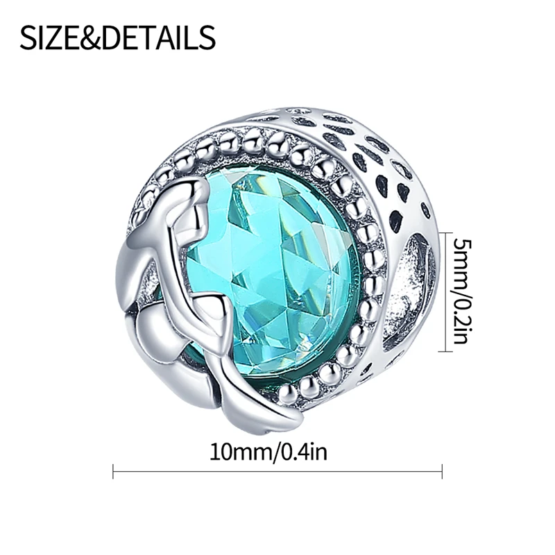 Женские круглые бусины из серебра 925 пробы с голубым Цирконом