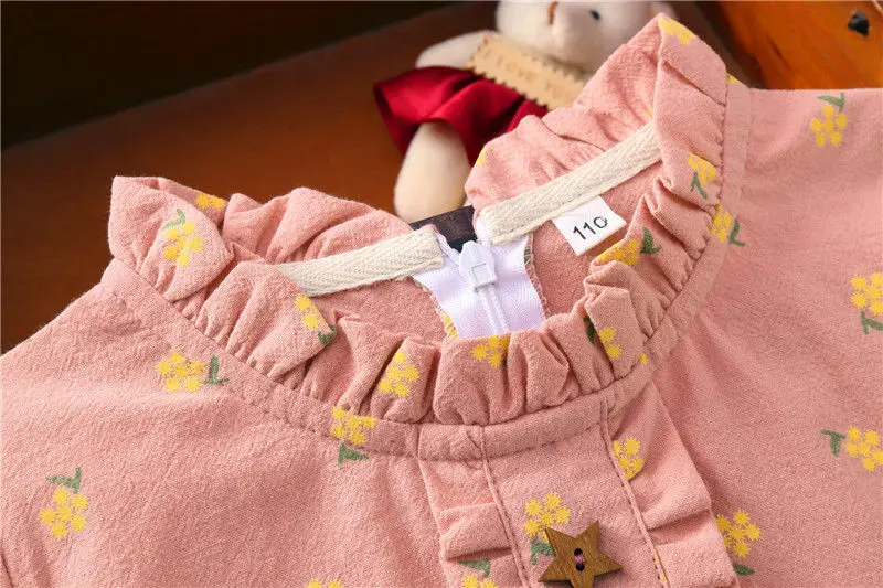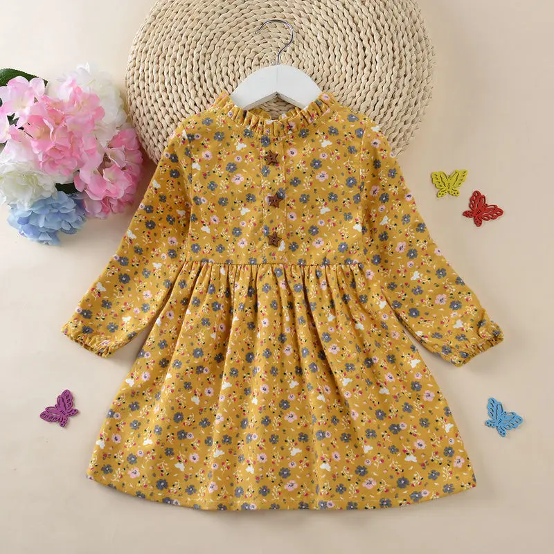 Хлопковое платье для девочек, весенне-осеннее Повседневное платье с длинным рукавом и цветочным принтом, детские костюмы принцессы, 3, 2021, От 5 до 8 лет