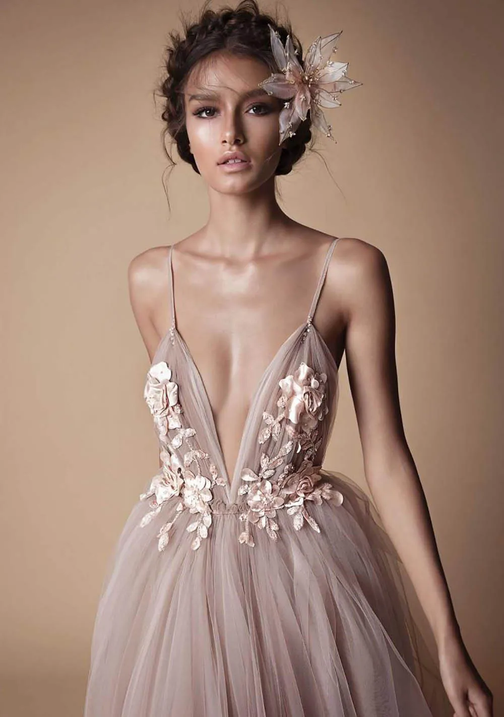 Женское платье подружки невесты, длинное Тюлевое платье с открытой спиной и V-образным вырезом
