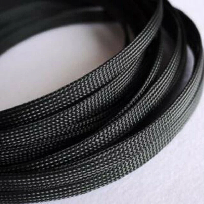 Черные плоские шелковые Кабельные муфты, 1-10 м, 3-100 мм, сетка из змеиной кожи ПЭТ, расширяемая изоляционная оболочка Braide