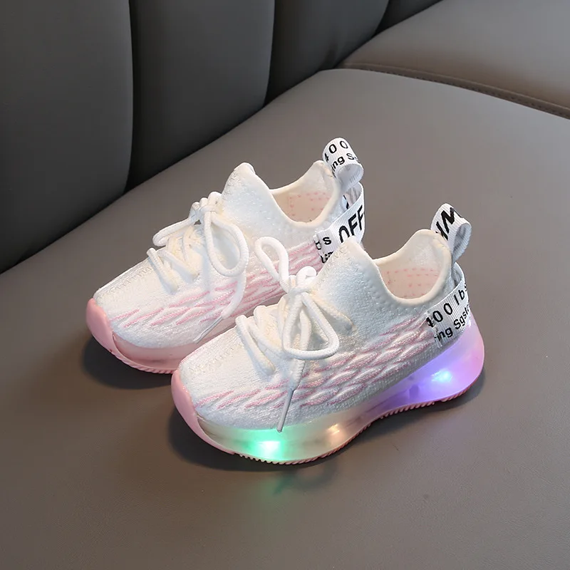 Детские светящиеся кроссовки для девочек, дышащая повседневная обувь с блестящей подошвой, размеры 21-30