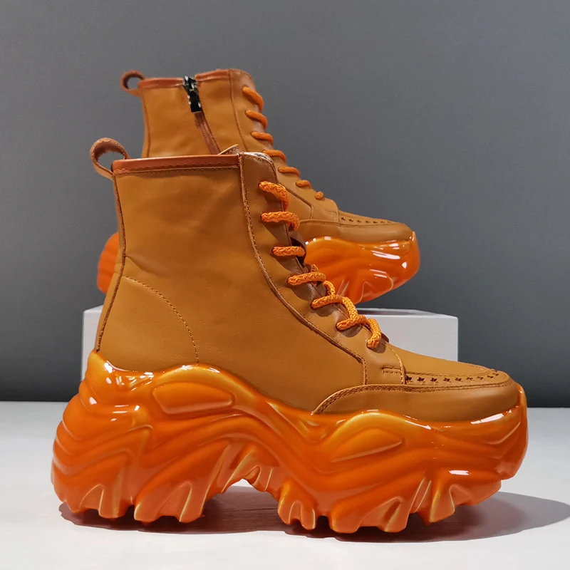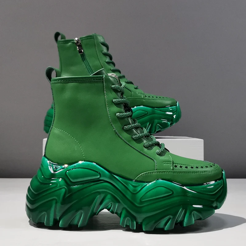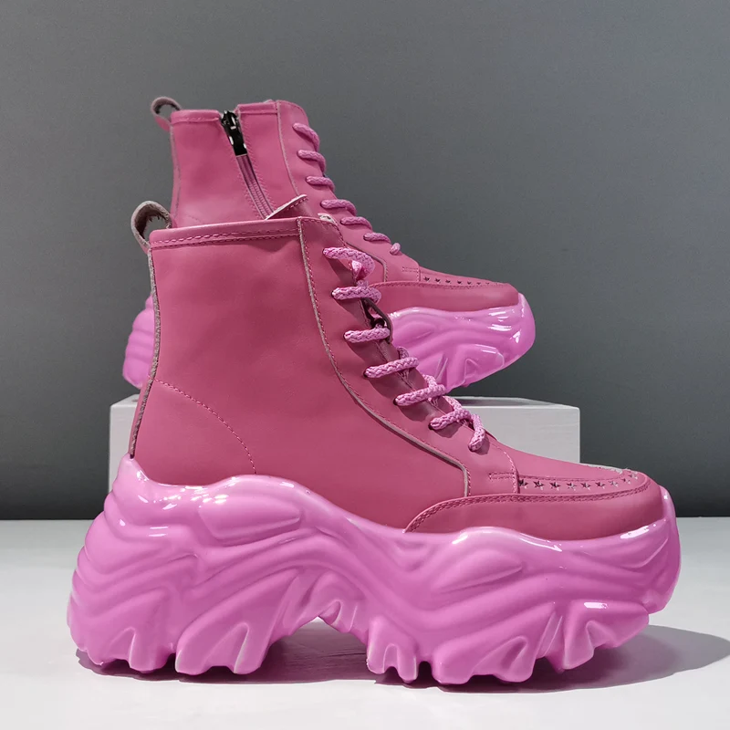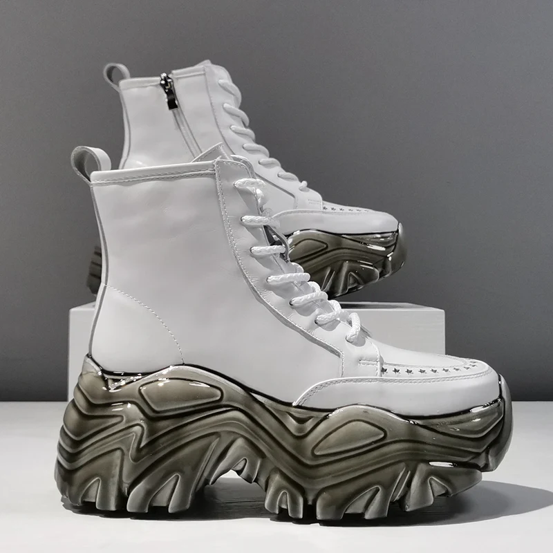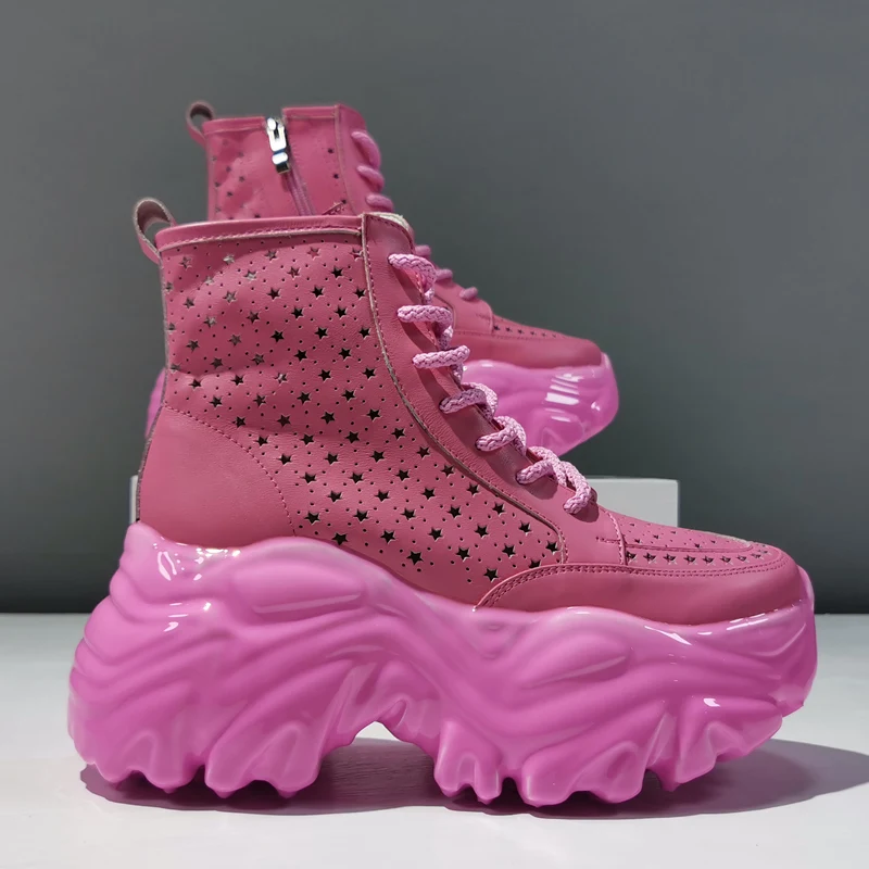 Женские ботильоны, кожаные дышащие ботинки с вырезами, повседневные женские ботинки с высоким верхом, женские ботинки на шнуровке с молнией и толстой подошвой