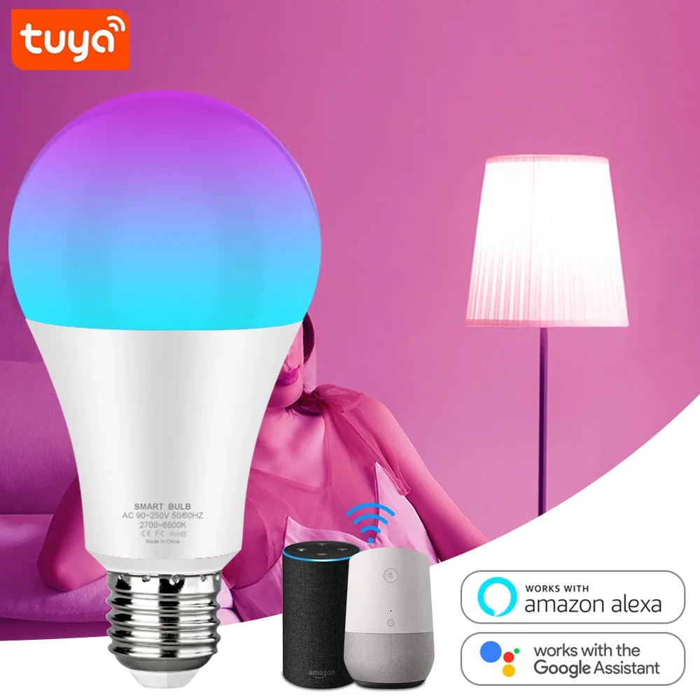 Умная Светодиодная лампа E27 Tuya с регулируемой яркостью, RGB Освещение с регулировкой яркости, цветные меняющиеся Led лампочки RGBW, белый Декор для дома
