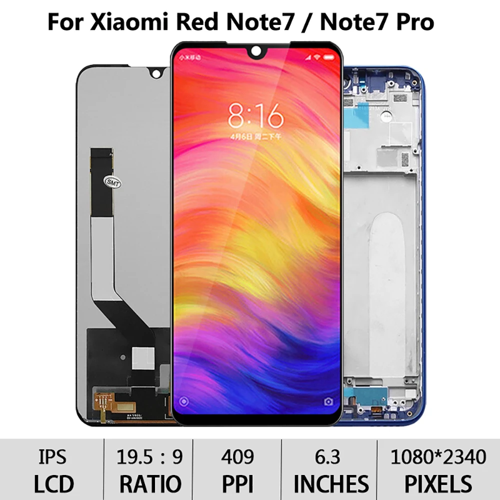 Дисплей для Xiaomi Redmi Note 7, сенсорный экран для Redmi Note7 Pro, ЖК-дисплей, оригинальная запасная часть M1901F7G на рамке