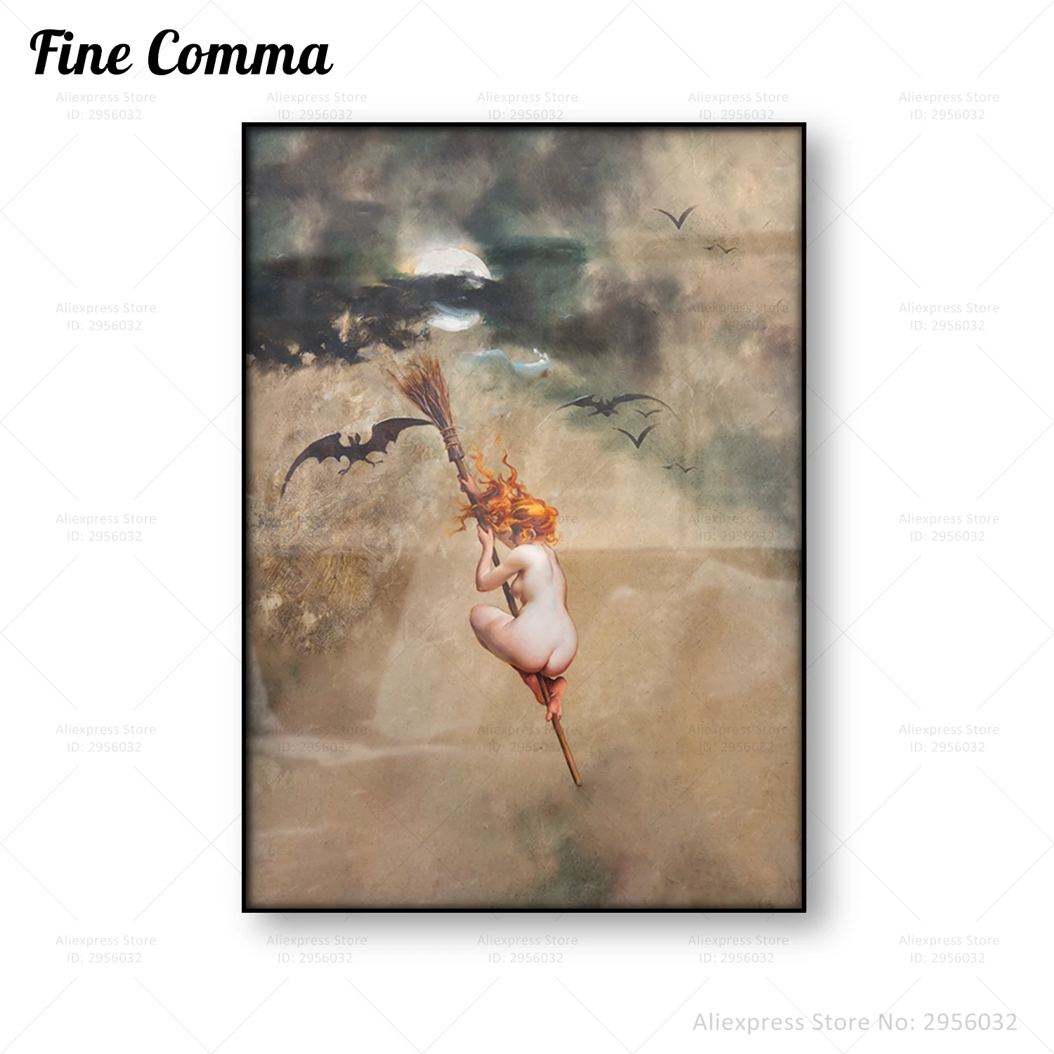 Винтажный постер ведьмы Райд Луис Рикардо фалареро Печать на холсте ведьма метла Готический оккультный Wicca Хэллоуин настенное Искусство Живопись Декор