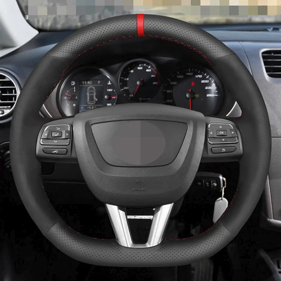 Чехол рулевого колеса автомобиля Нескользящая черная замша из натуральной кожи ручной работы для Seat Leon (FR CUPRA) MK2 1P 2009 2010 2011-2012