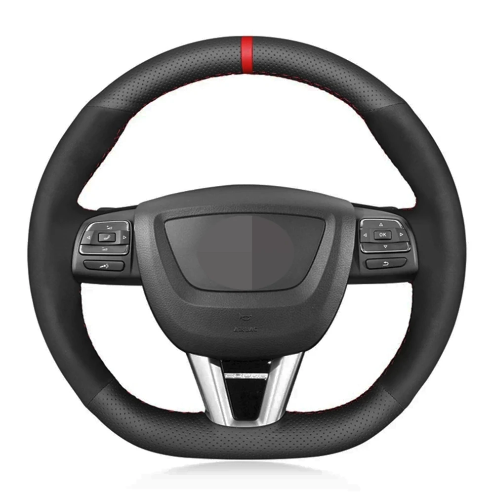 Сшитый вручную черный замшевый красный маркер Чехлы рулевого колеса...