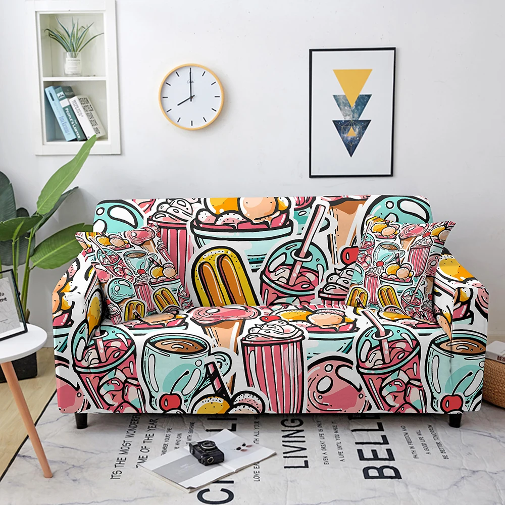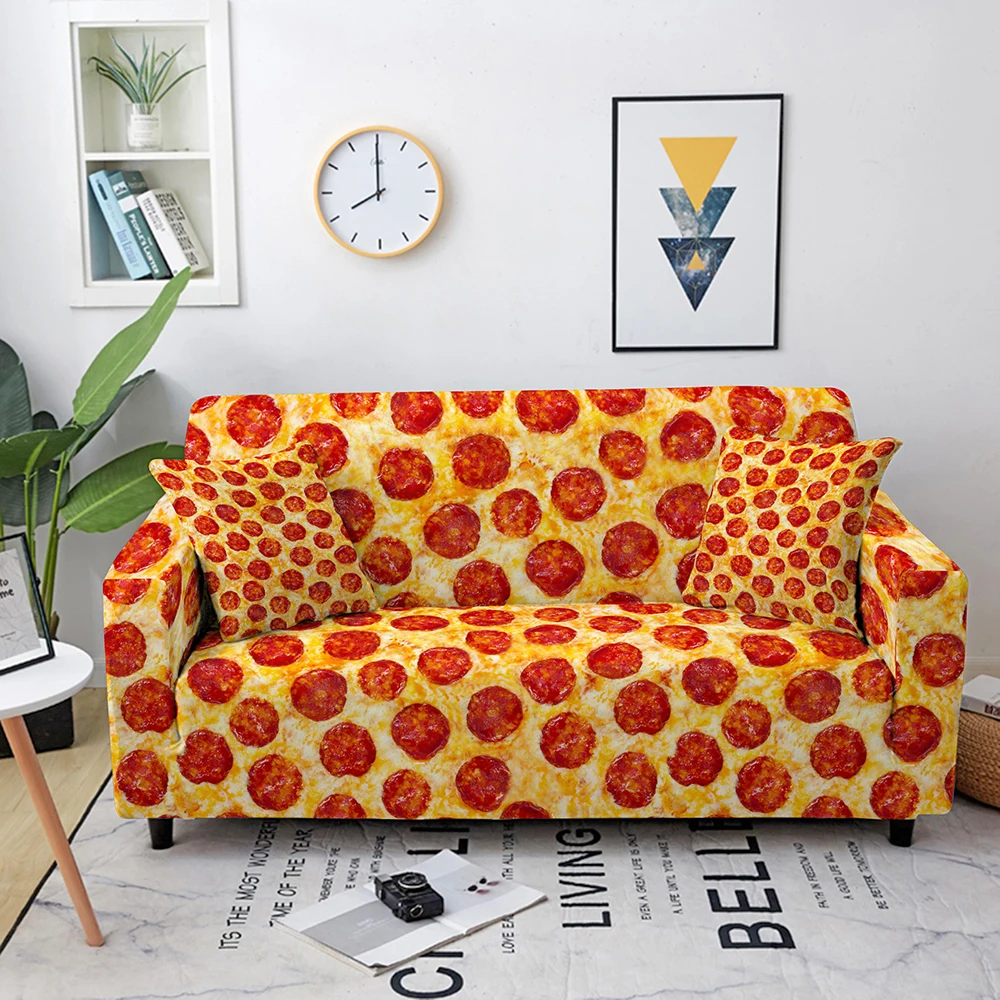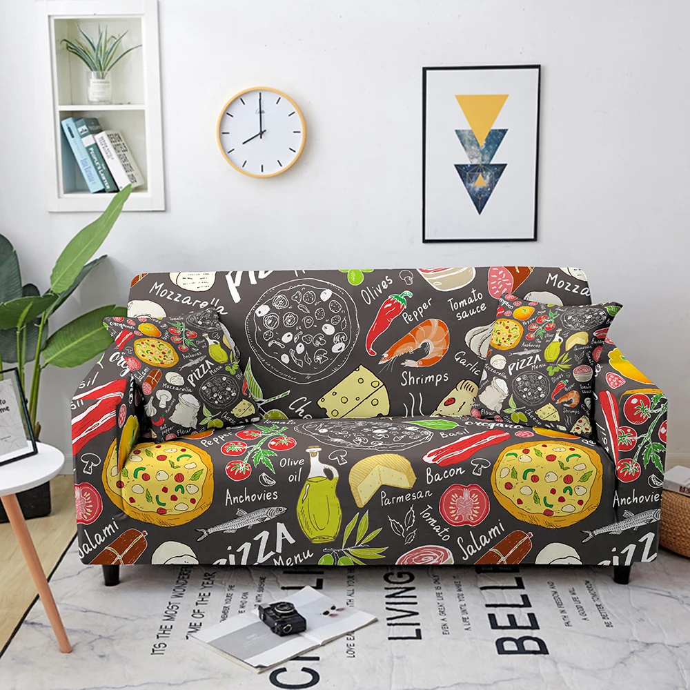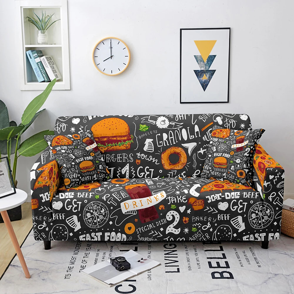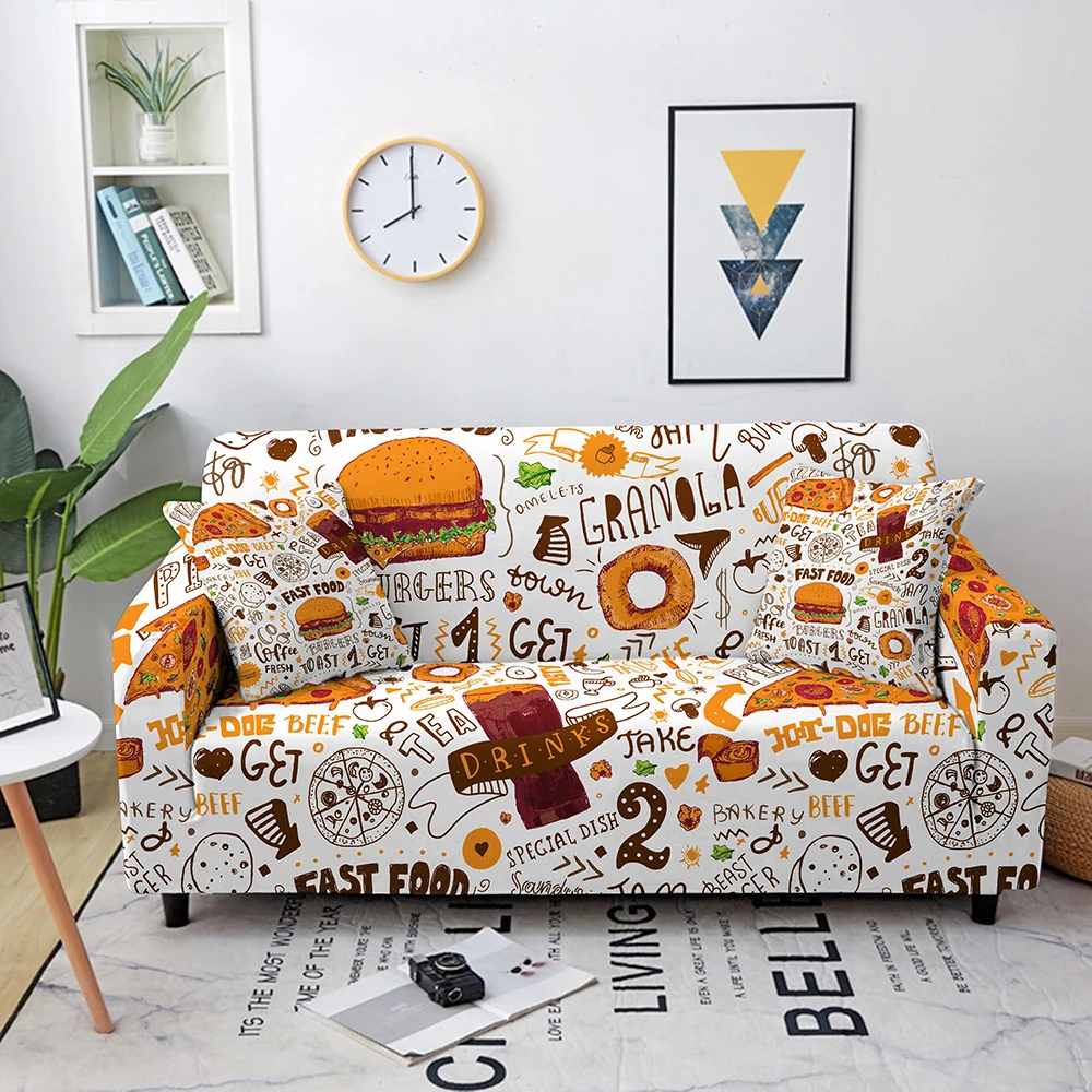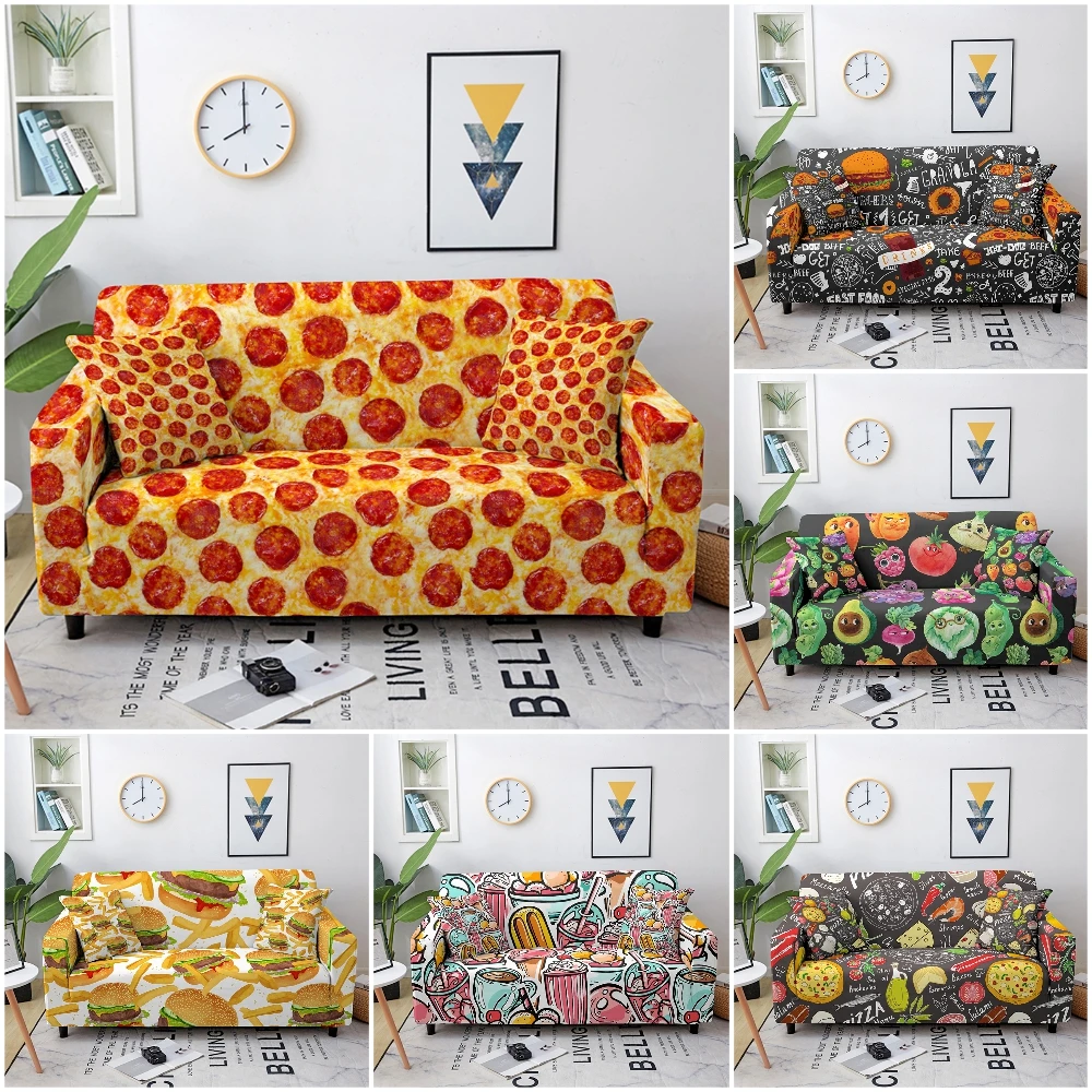 Эластичный чехол для дивана, чехол для дивана с рисунком пиццы, бургеров, картошки фри, эластичный чехол для дивана в гостиной, защита для дивана, украшение для дивана